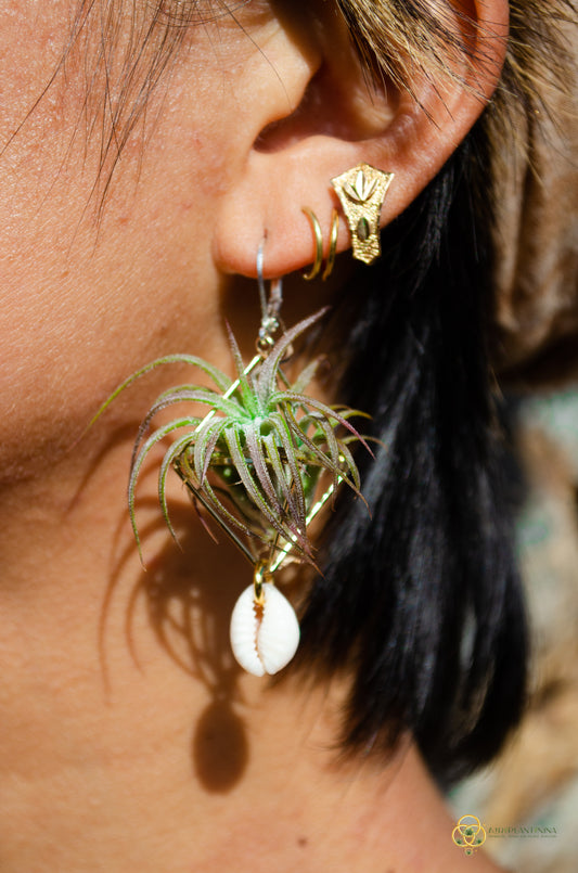 Cowrie Shell Air Plant Earrings ~ Mini Diamond Octahedron Earrings