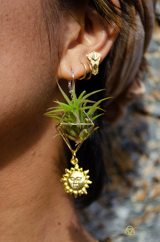 Golden Sun Charm Air Plant Clip Earrings ~ Diamond Octahedron Earrings