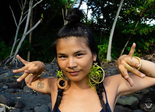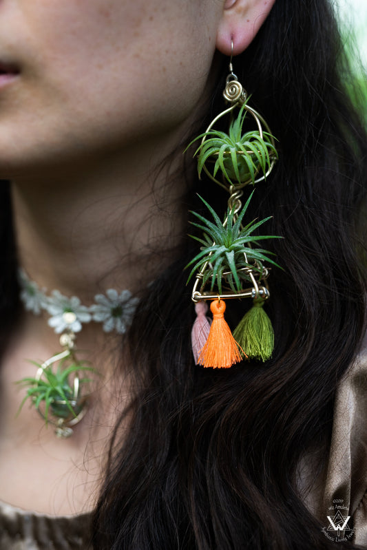 Fiesta Air Plant Orb Pyramid Earrings ~Festival Living Pinata Tassel Temple~