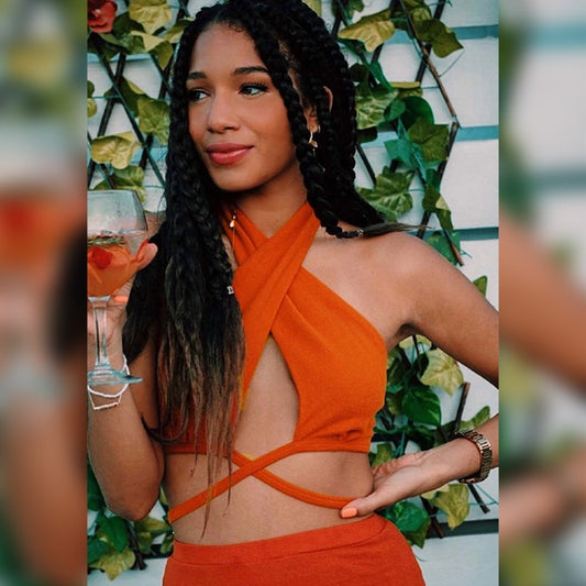 Monique Butterfly Criss Cross Wrap Halter Crop