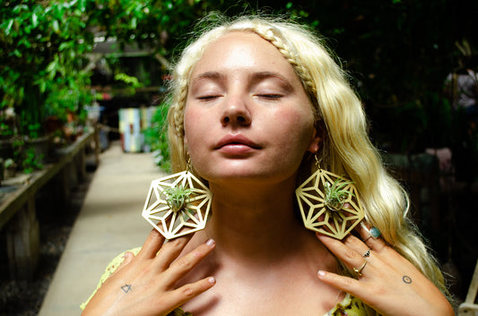 Flower of Life Wood Air Plant Earrings