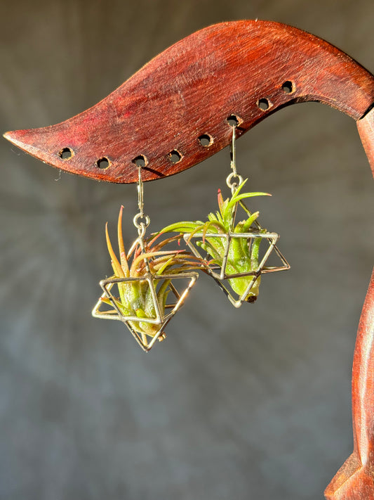 Sterling Silver Merkaba Air Plant Earrings ~ 3D Polyhedron Geometric Earrings