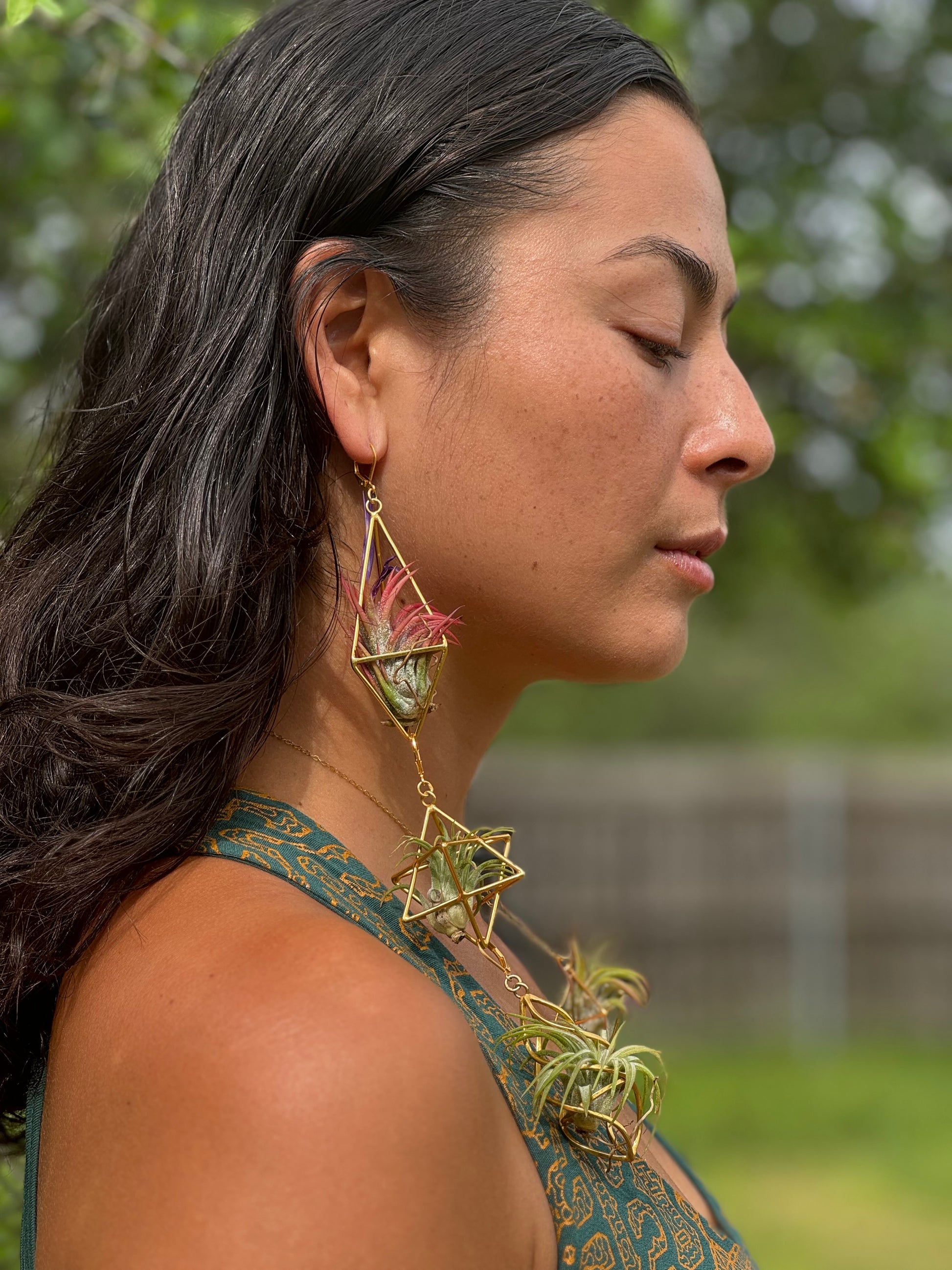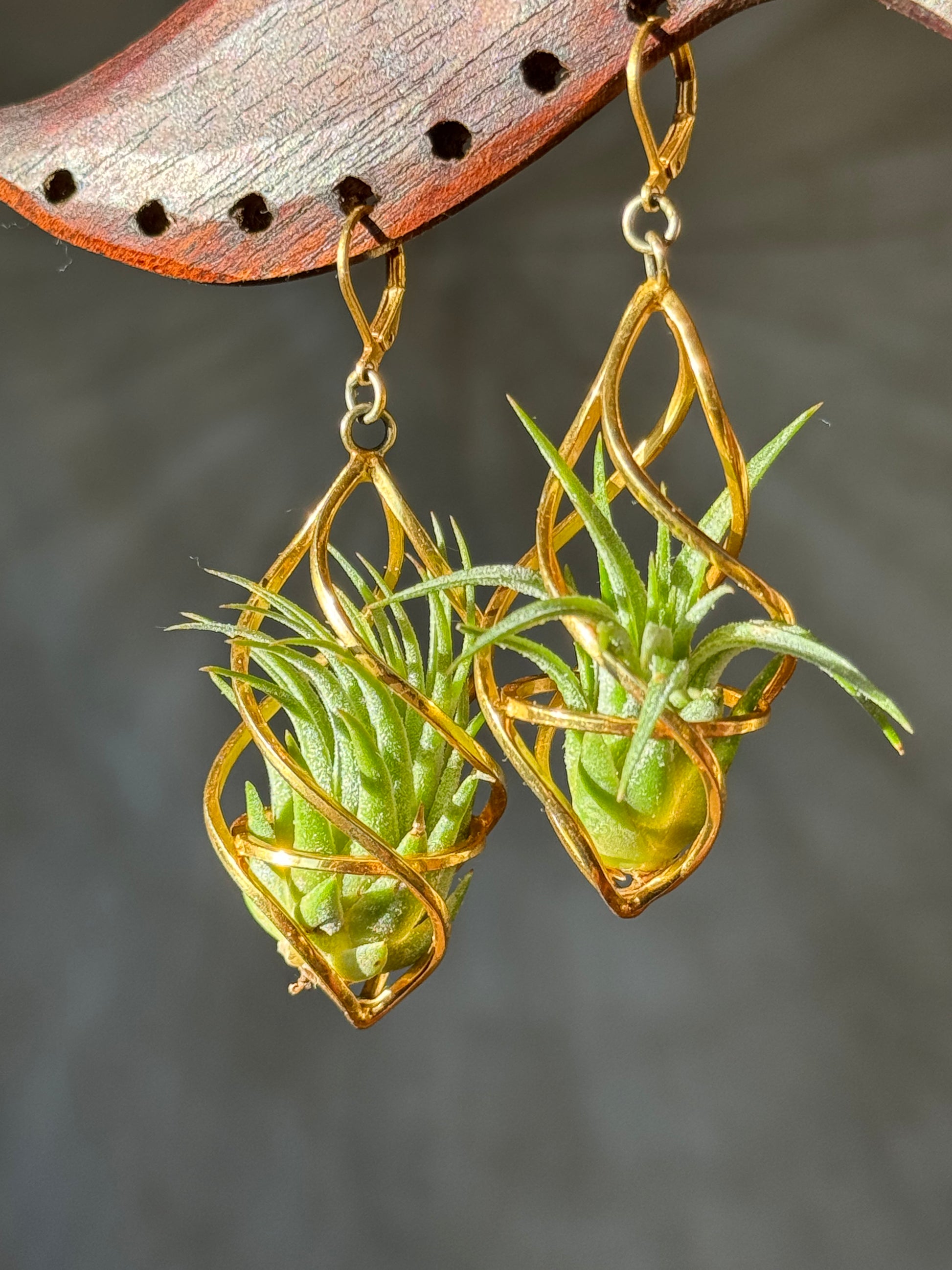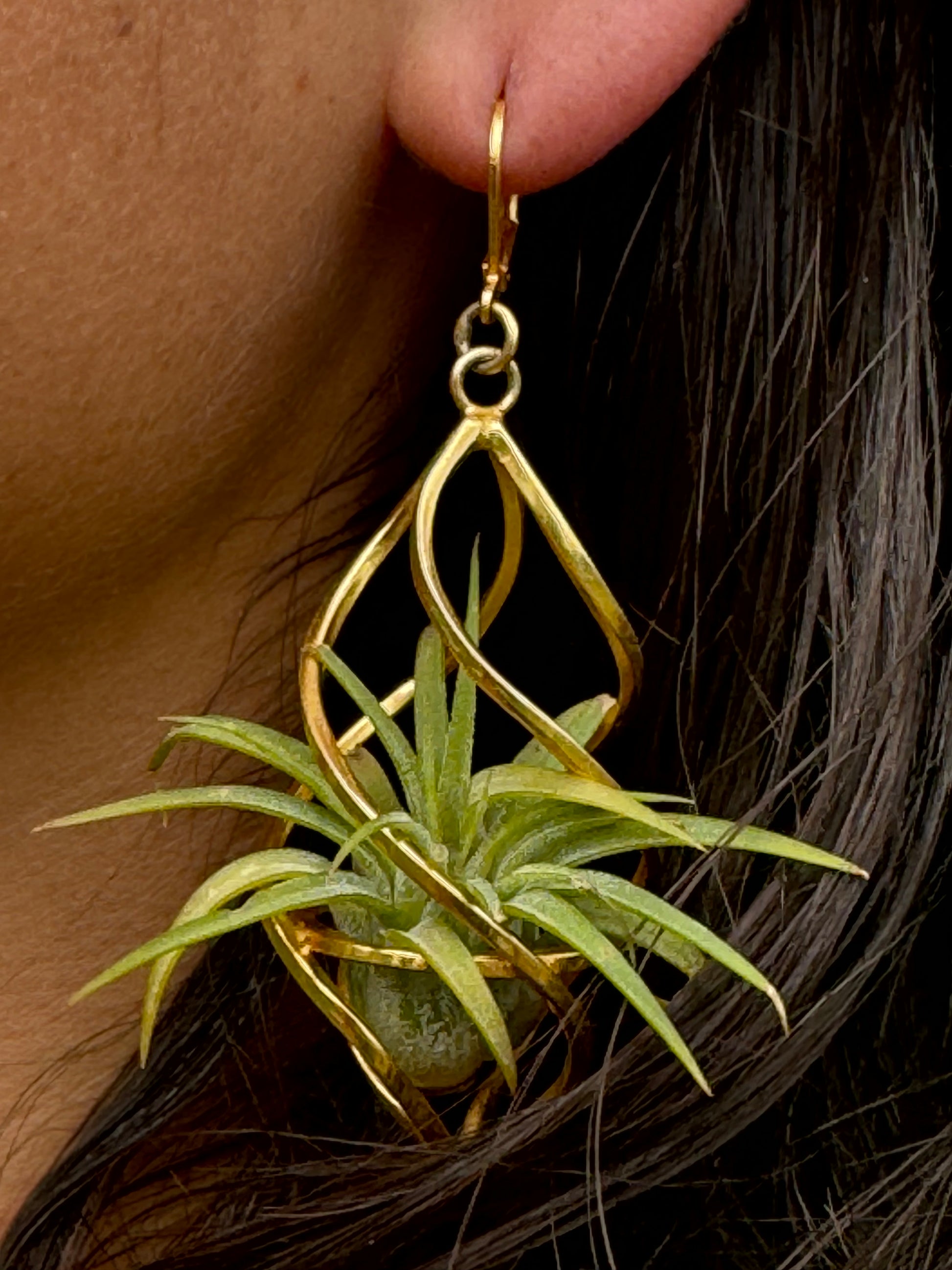 These 24K Gold Eco-Lux Living Air Plant Earrings are cradled in a Royal Wind-catcher Spindel, that will create a optical-illusion effect when spun or hit by the wind. Elegant, Statement Piece ~ Bringing you Fresh Air and Great Energy! These Plant Earrings are perfect for any occasion! Guaranteed Unique Style that will Turn Heads & Intrigue.🦋