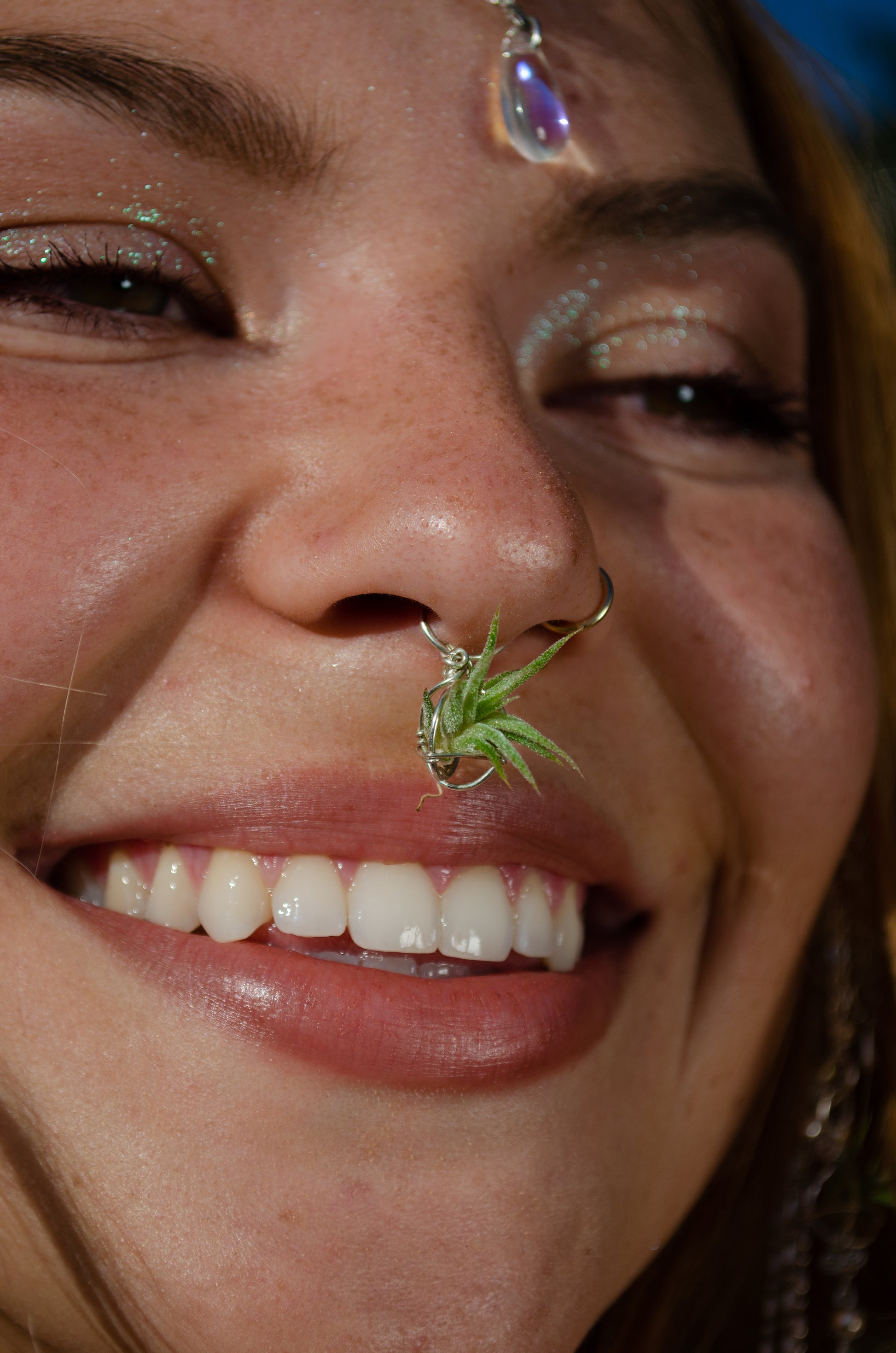 โฃโฃGuaranteed Most Unique Nose Ring EVER. ๐ These 6mm Micro Baby Air Plants are breathing and creating Fresh Air ON your nose ๐ The Septum Nose Ring Cuff doesn't require a piercing and is adjustable and easy to wear! and Strut that Symbiotic Style! Sterling Silver Orb for the Mini Plant, and Sterling Silver Ring.ย