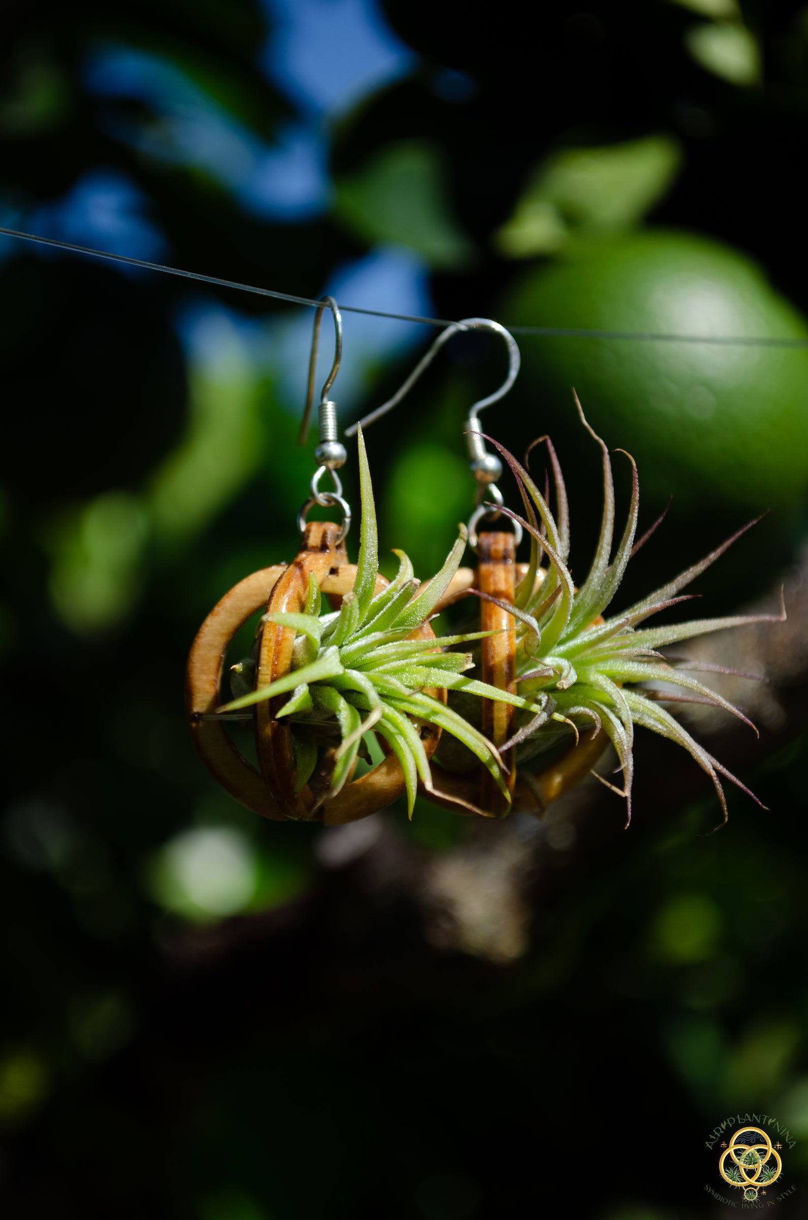 Lasercut Wooden Air Plant Orb Earrings ~ Japanese Tsugite Technique