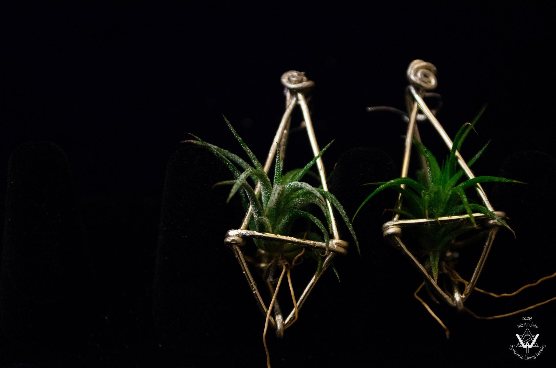 These Dainty Living Air Plant Earrings are elegant, cute, minimalist, yet makes a statement! The slender golden geometric double tetrahedron gently cradles and holds the plant securely in place. Guaranteed Unique Style that will Turn Heads & Intrigue.๐ฆ