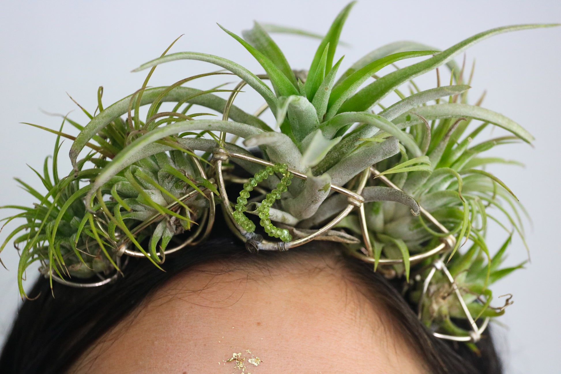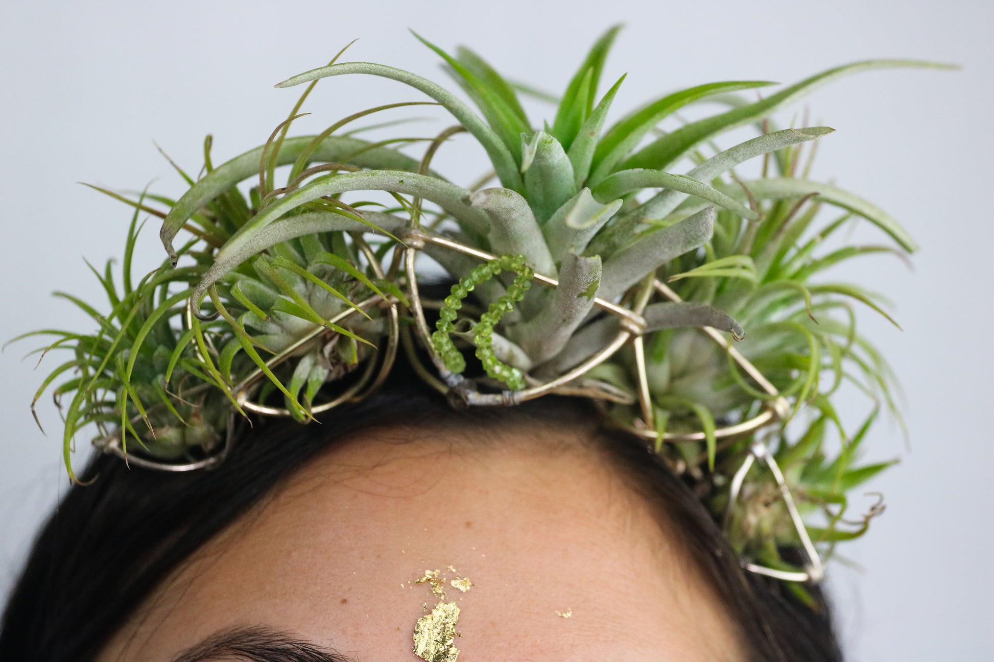 Lush, Beautiful, Festive Air Plant Crown with 5+ Large Air Plants. Perfect for a Wedding, Birthday, or any Celebration of Life! Air Plants are securely cradled, yet interchangeable in our signature orb fixtures. Plant Orbs can also become a cage/home/temple for additional plants and flowers. ๐ธ Grow an abundant forest on your crown! ๐ฟGuaranteed Unique Style that will Turn Heads & Intrigue. Embody Symbiotic Style! ๐
