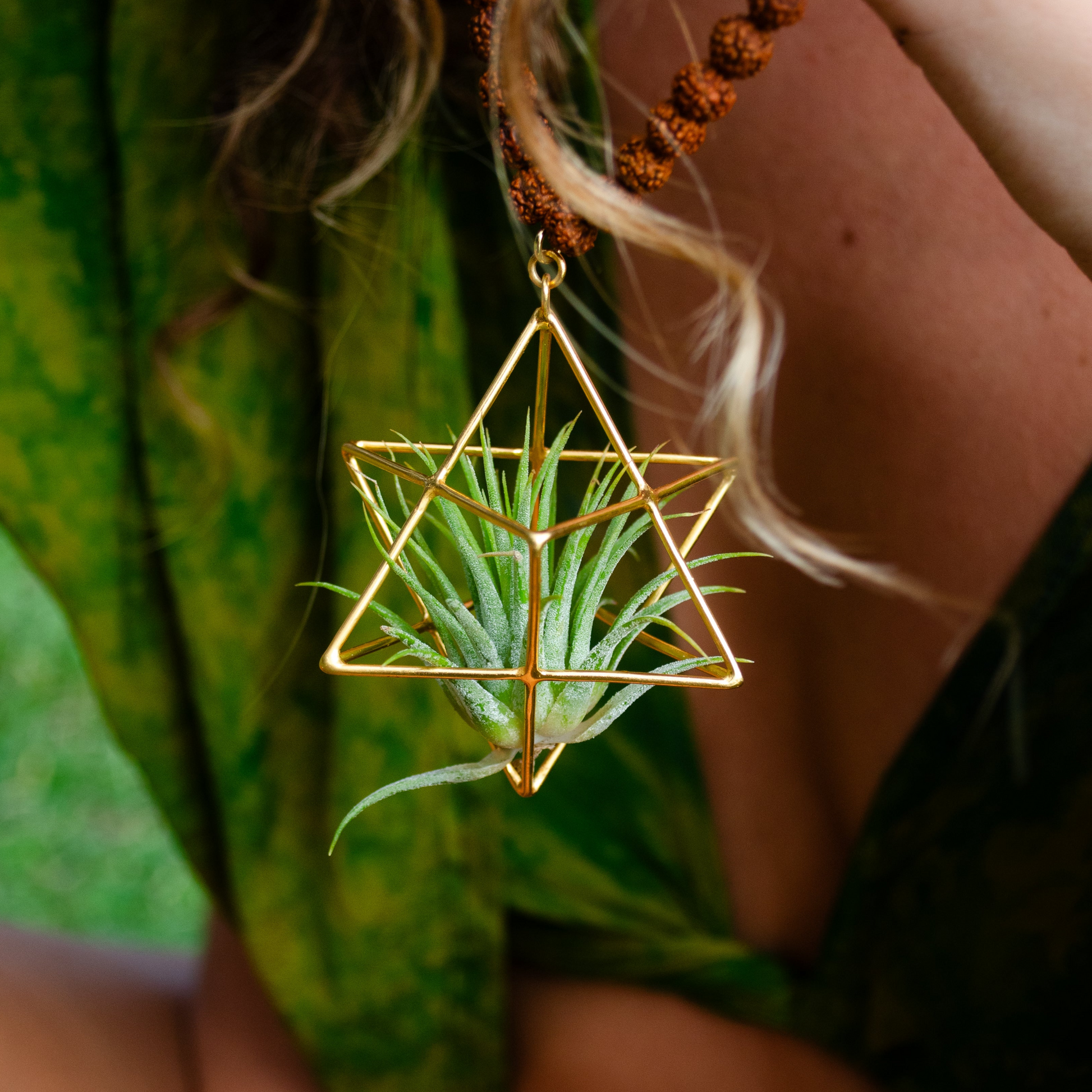 Air Plants Charge and Meditate in their 24K Gold MerKaBa (Rotating Body of Light) Sacred Geometry Temple ~ The 3D shape gently cradles and secures the interchangeable air plant, while being suspended on Rudraksha Seed Beads. Rudraksha Tree Seed Beads, that bring you protection and magnifies positive energy. Breathe, Grow, and Mediate with your plants!🌿 Become a Metaphysical Air Plant Monk!