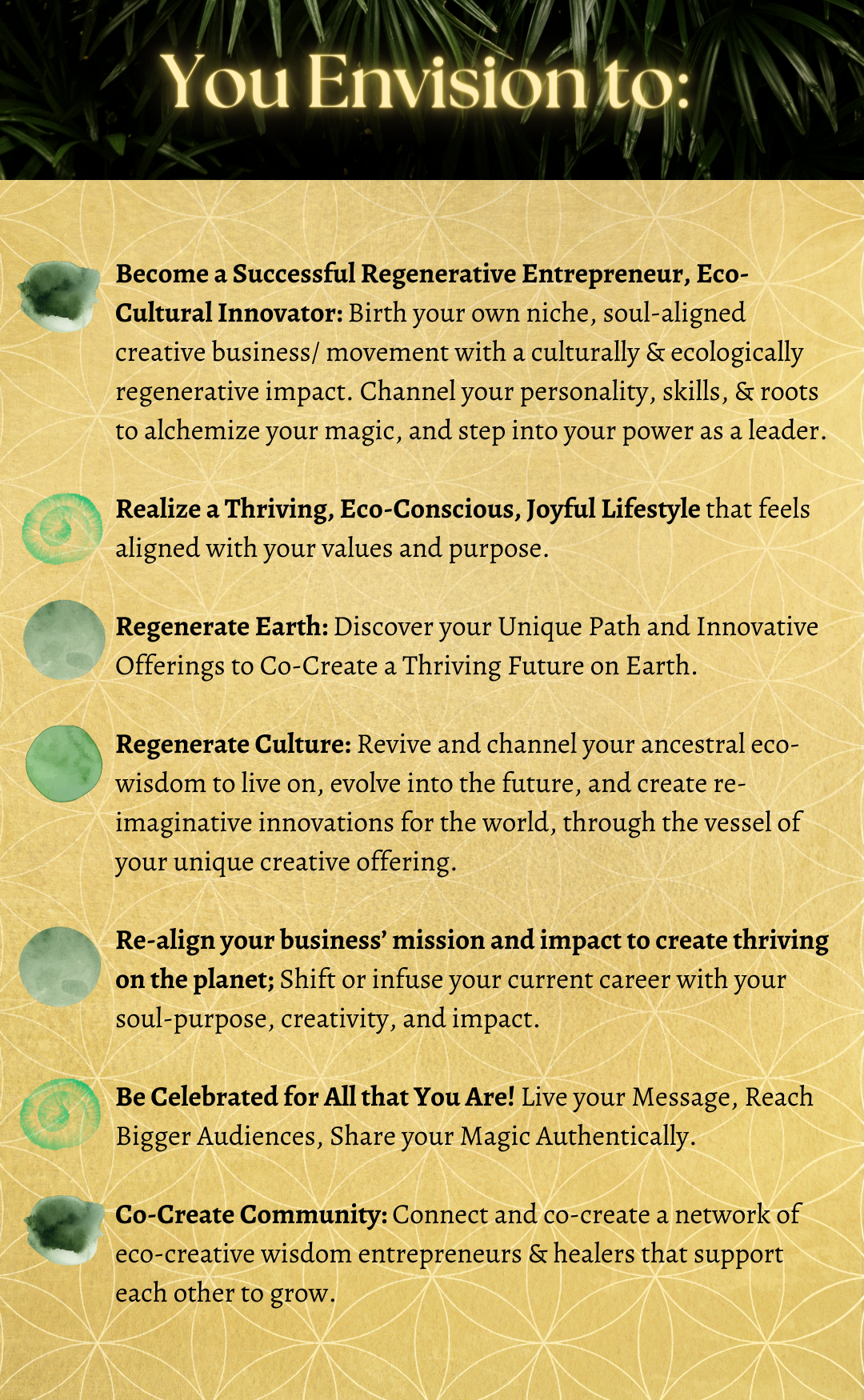 - Environmental and Cultural Enthusiasts, that want to start something new, re-imagine, or shift their mission and impact, and thrive!