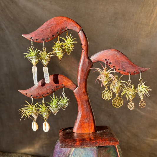 ✅ Curated Air Plant Earrings on a handcrafted display tree