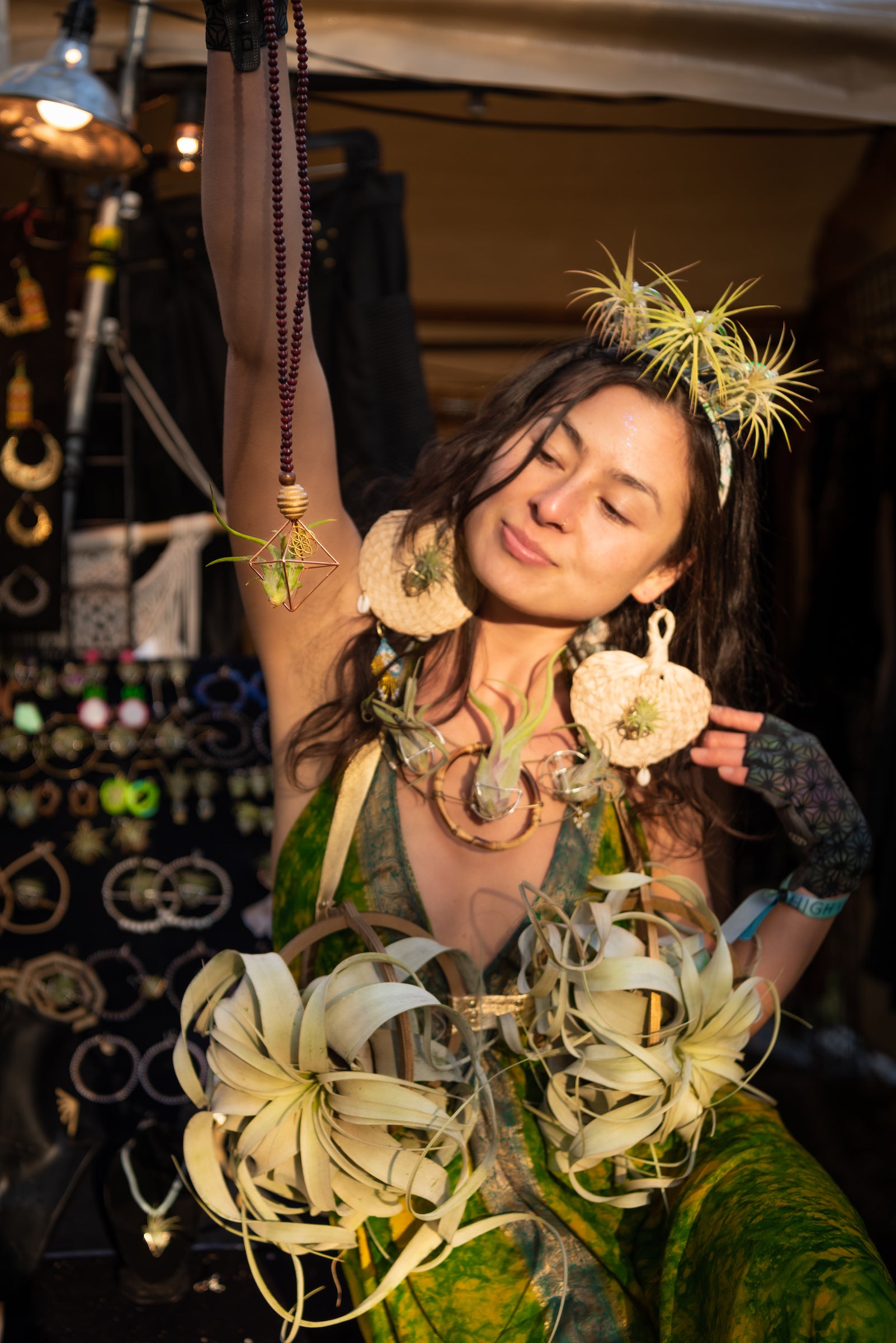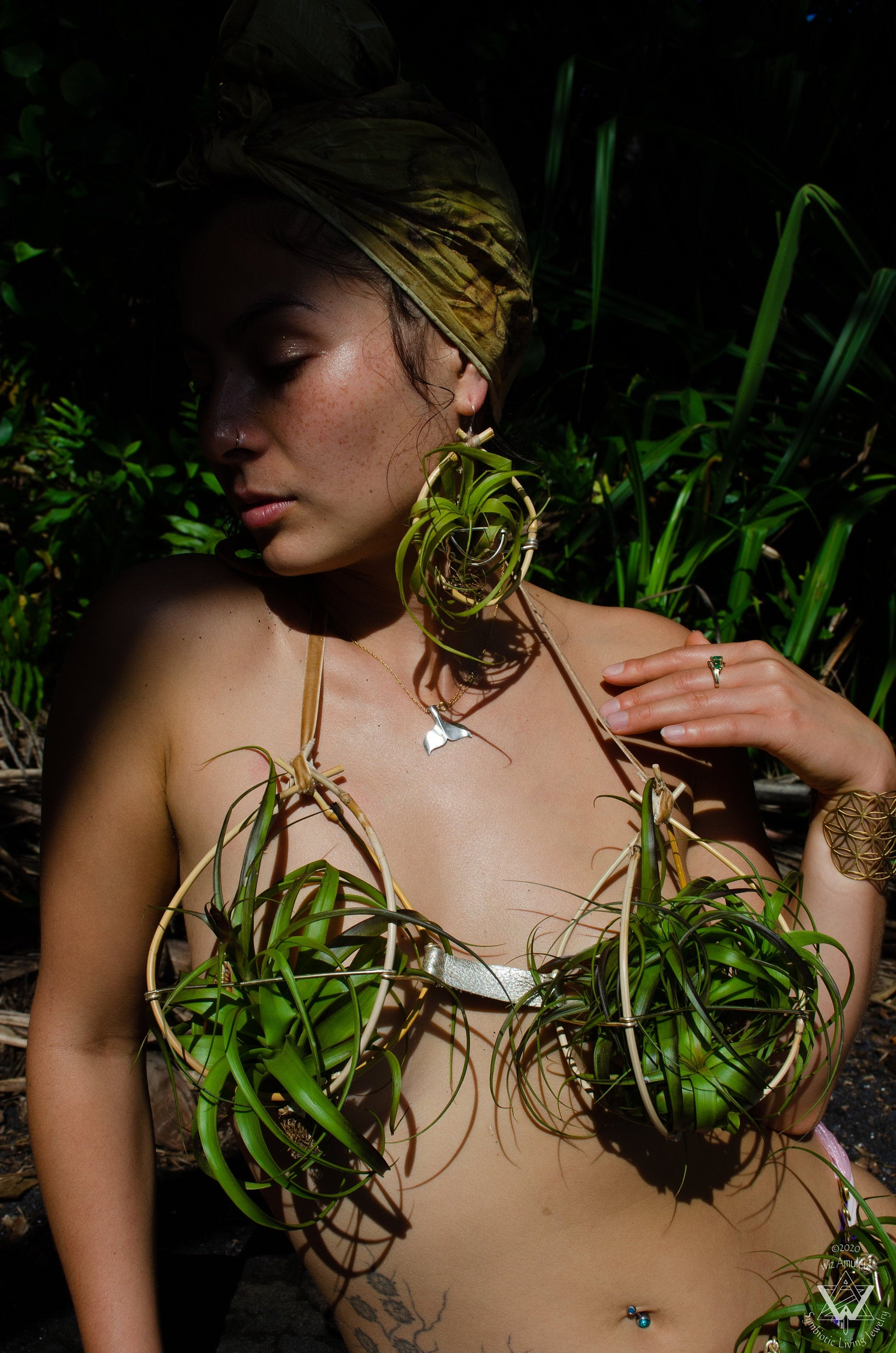 The Most Organic Living Bikini EVER!! This Top n' Bottom Set is made of skillfully hand-shaped bamboo orbs that house and cradle the Air Plants perfectly on your body, for the perfect Bamboob! Essential for festivals, beaches, and social events! Intrigue, inspire, and spark profound moments. Embody the Symbiotic Style, Earth Goddess! ๐ฟ