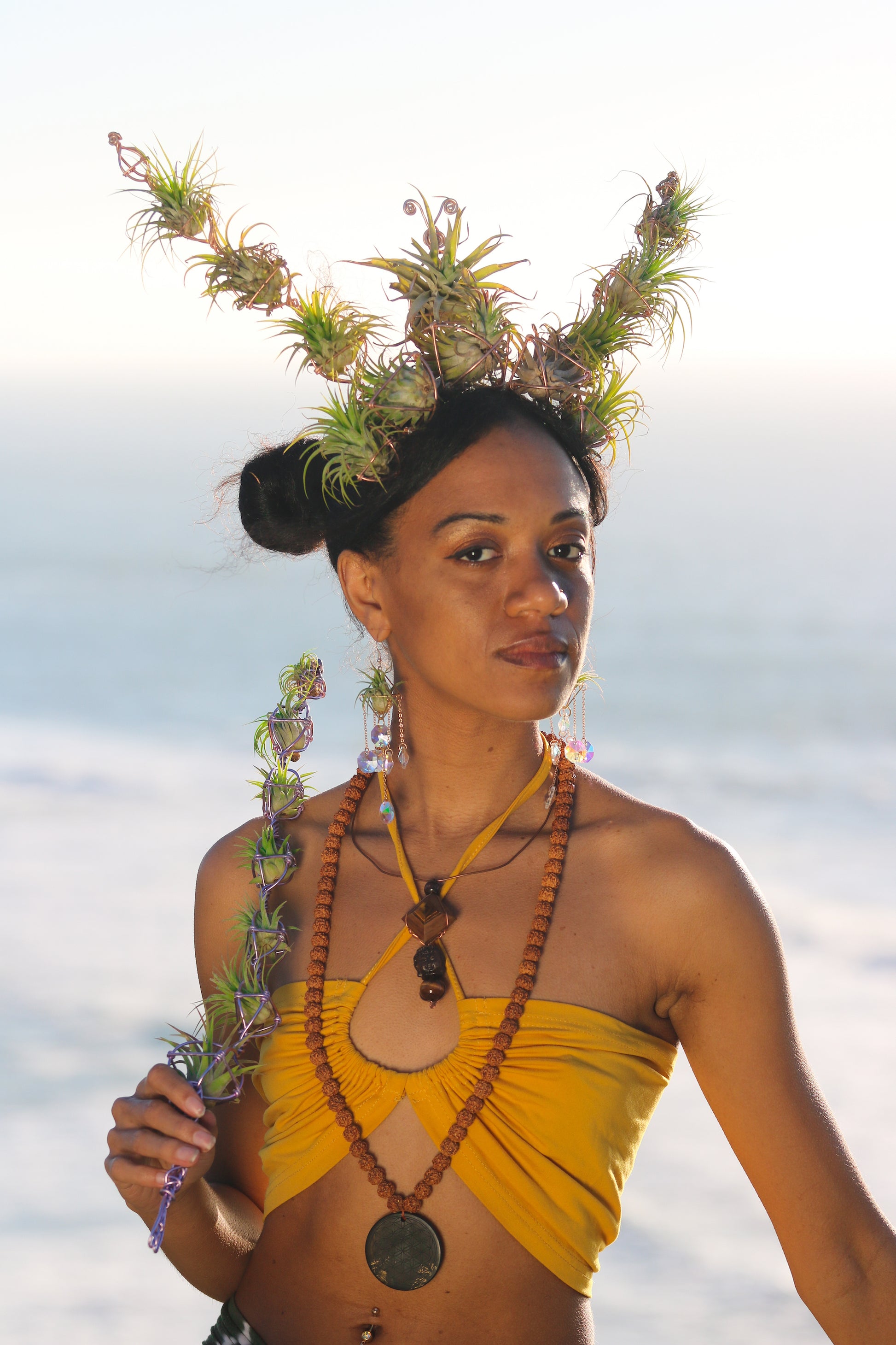 POOF! You COSMIC FAIRY WARRIOR! Its a Living Fairy Wand made of Air Plants! These Bio-Antennas purify your air + bring thriving life force energy.๐ฟ Lush, Beautiful, Festive Wand with 7+ Large Interchangeable Air Plants securely cradled in Multi-Cellular Orb fixtures. Each Air Plant Orb temple represents a cell, an atom, the basic unit of creation. When these cells are woven together, infinite forms and geometry can be created. Co-exist with your new plant friends and Strut your Symbiotic Style!ย