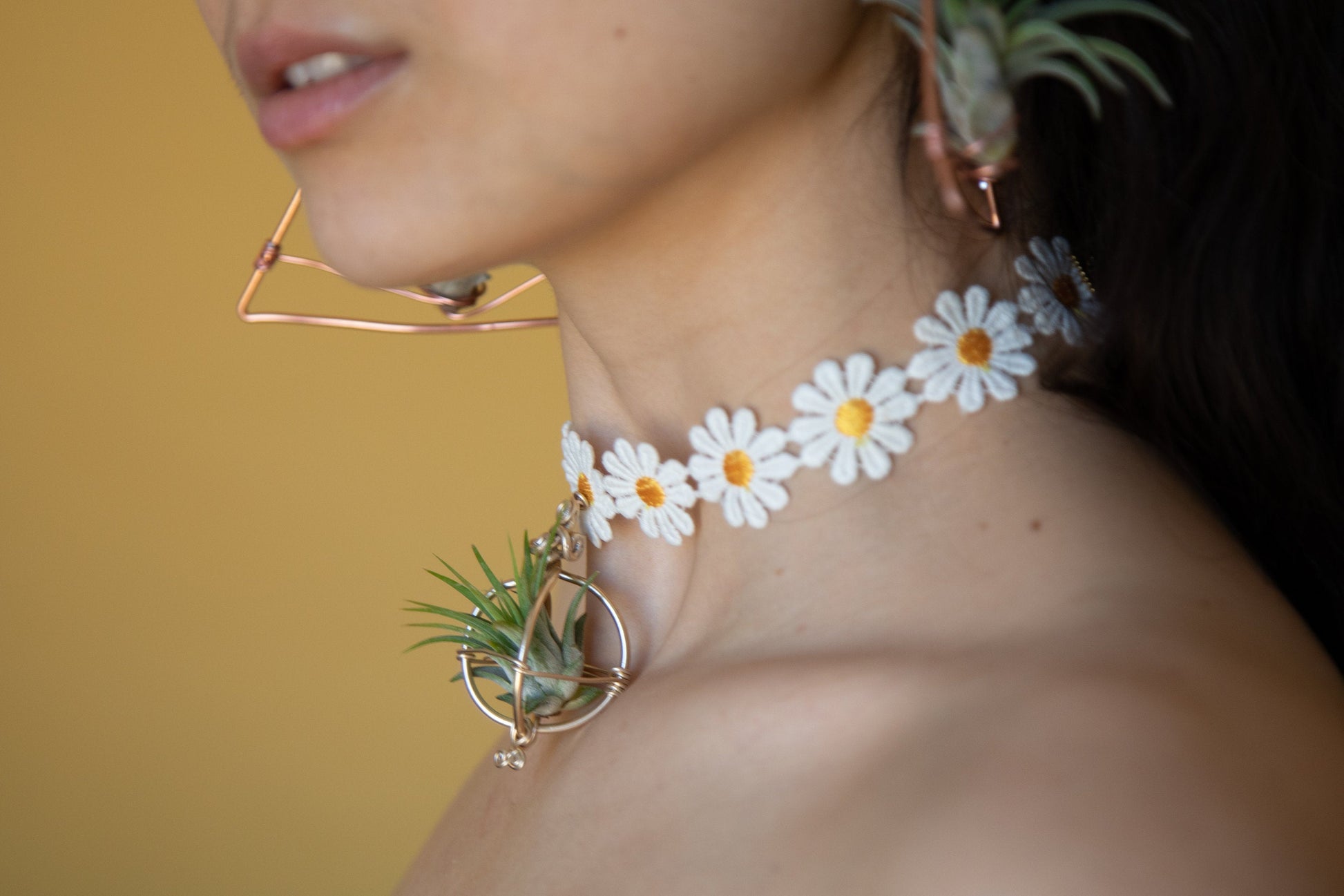 Bloom Flower Child! Free spirited flower ribbon choker dangles a tiny air plant friend dangles like a bell on a Kitty collar. This is fun to wear anywhere and everywhere from parties, festivals, to work! They intrigue and inspire many, sparking great conversations ❤ You are a walking Embodiment of Style in Symbiosis ~