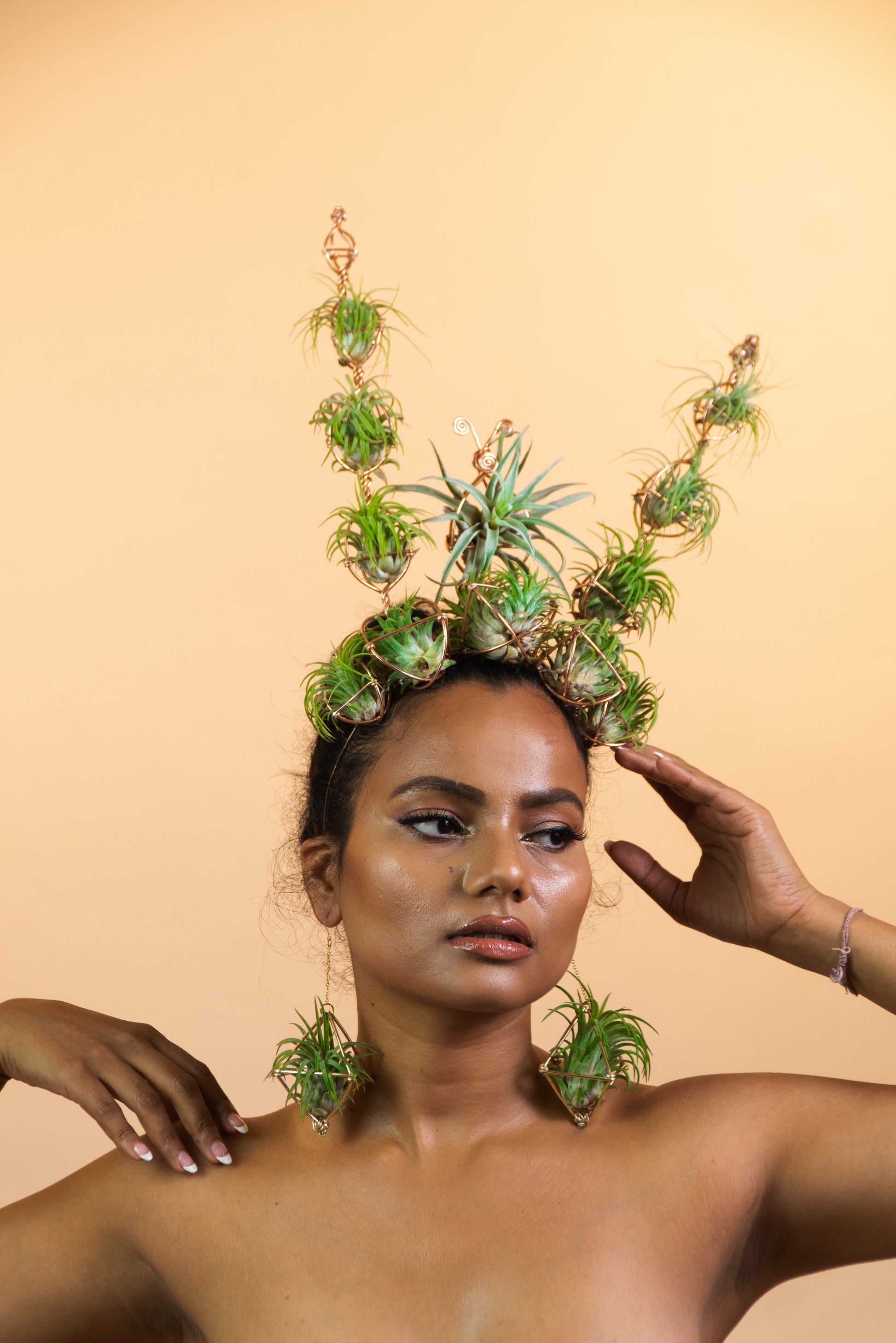 Grow Life on your Head! Air Plant Antennas are like living Skyscrapers ~ These Bio-Antennas breath the air in the sky, and connect you to life force energy.๐ฟย Make a Bold Statement when you walk in the room! Lush, Beautiful, Festive Air Plant Crown with 14+ Large Interchangeable Air Plants securely cradled in Multi-Cellular Orb fixtures. Guaranteed Unique Style that will Turn Heads & Intrigue. Co-exist with your new friends and Strut your Symbiotic Style!