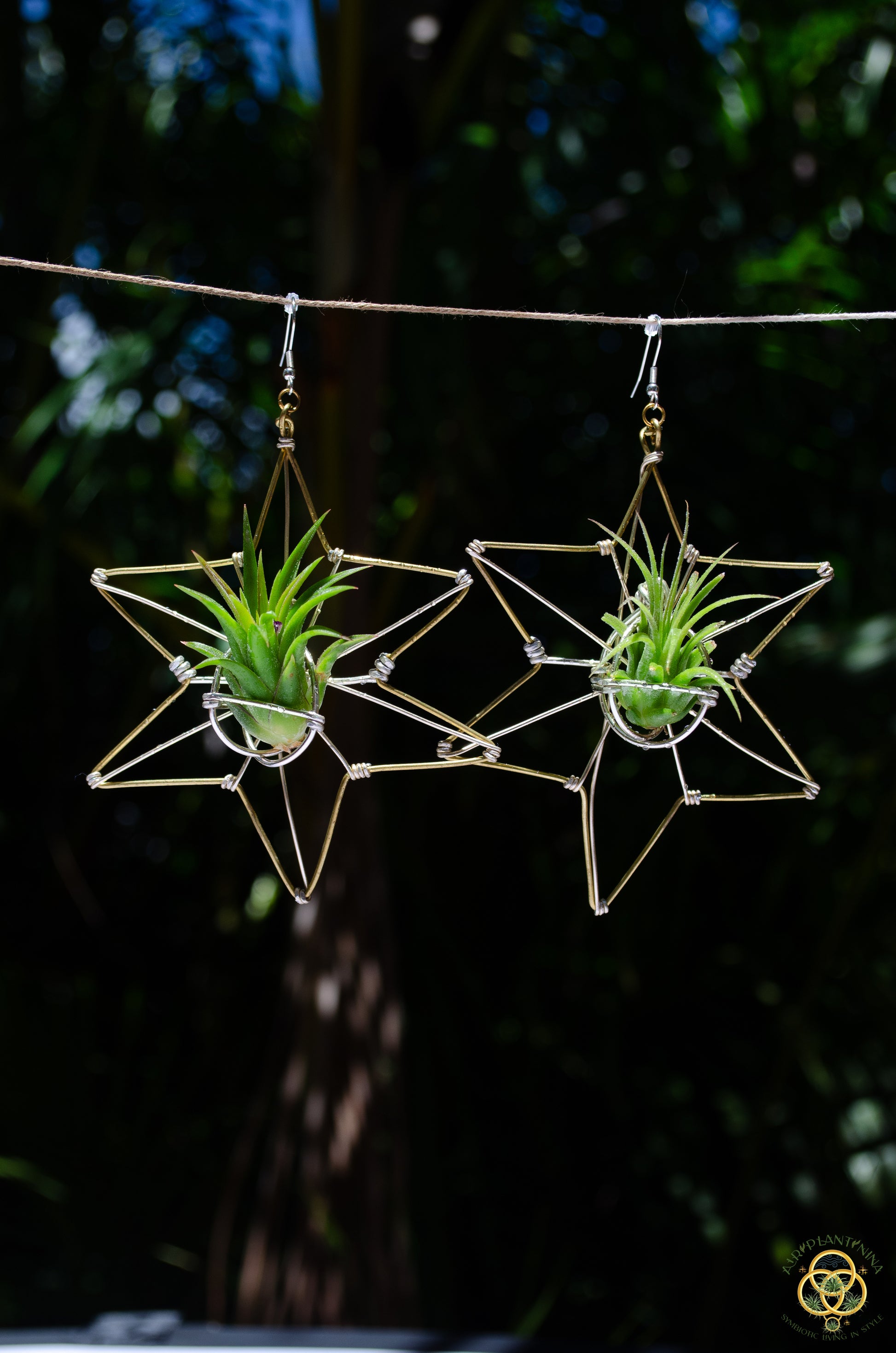 ๐๐๐๐๐๐๐ ๐๐๐๐๐๐๐๐ ๐๐๐๐๐๐ ๐๐๐๐๐๐๐๐ ๐๐๐๐ ๐๐๐ ๐๐๐๐๐ ๐๐๐๐ ๐๐๐๐๐๐๐๐ ~ Asa-No-Ha ้บป ใฎ ่ is an ancient Japanese sacred geometry pattern representing the Hemp Leaf. It also reflects the geometry of air plants, and all of nature. This pattern is essentially also the Mer-Ka-Bah (rotating body of light,) representing the unity in ancient wisdom across the globe. This Asa-No-Ha co-existing with the living air plants amplifies your sacredness connection to nature. These earrings are living shrines next to your face :) Choose from wire-wrapped design to the lasercut wood design(light weight). Revive the sacred ceremony of caring for plants into your life!ย