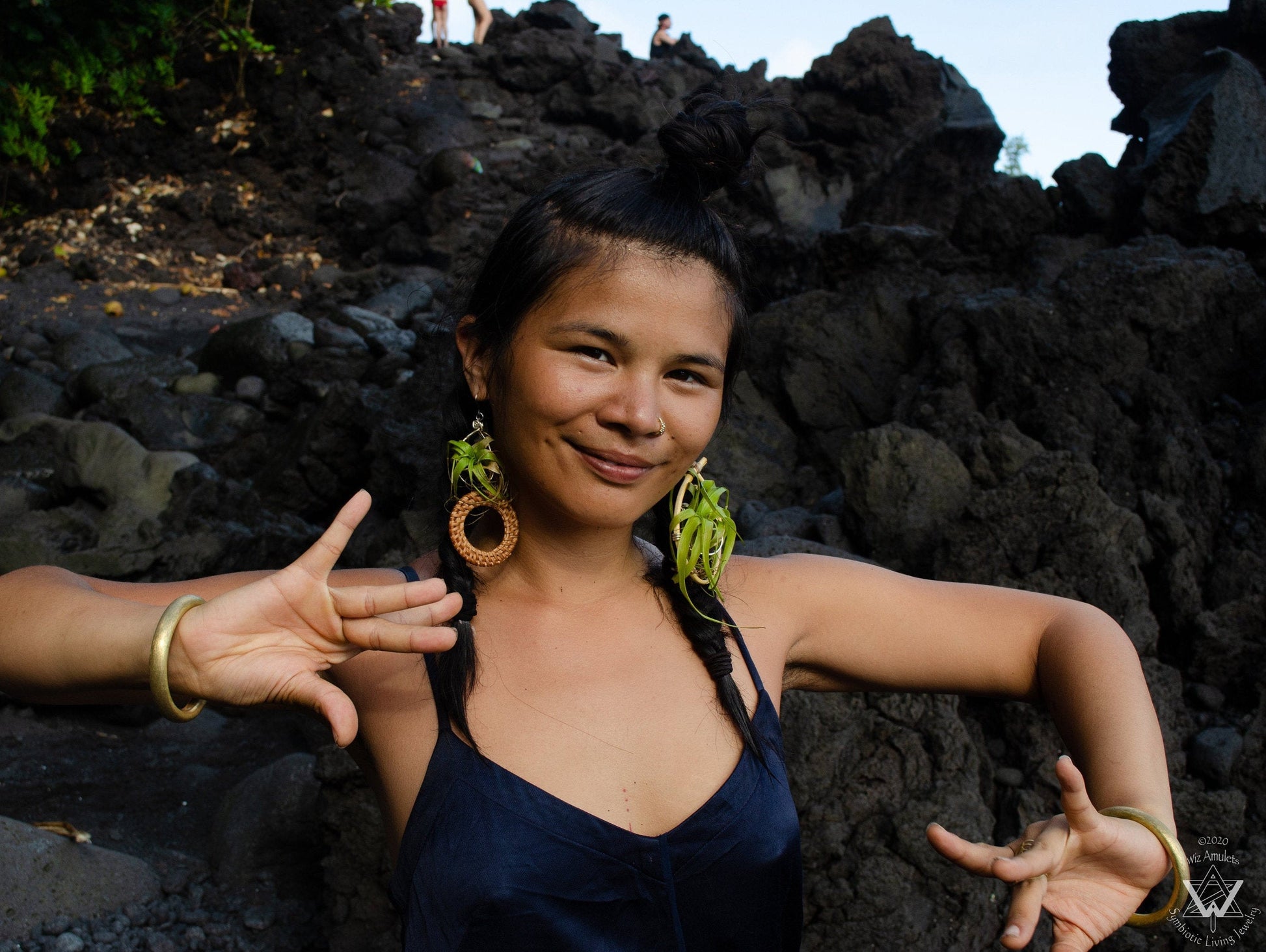 REAL Bamboo. Taking "Bamboo Hoops" back to its O-rigins!!! Wearing Plant-Based Designs feel AMAZING. Bamboo is Smooth, Light, and Comfortable. It is sustainably foraged in Hawaii, and hand-shaped and bound with hemp into hoops by me! Living Air Plants create Oxygen. Strut that Eco-Sass with these "Bambhoops! :)๐