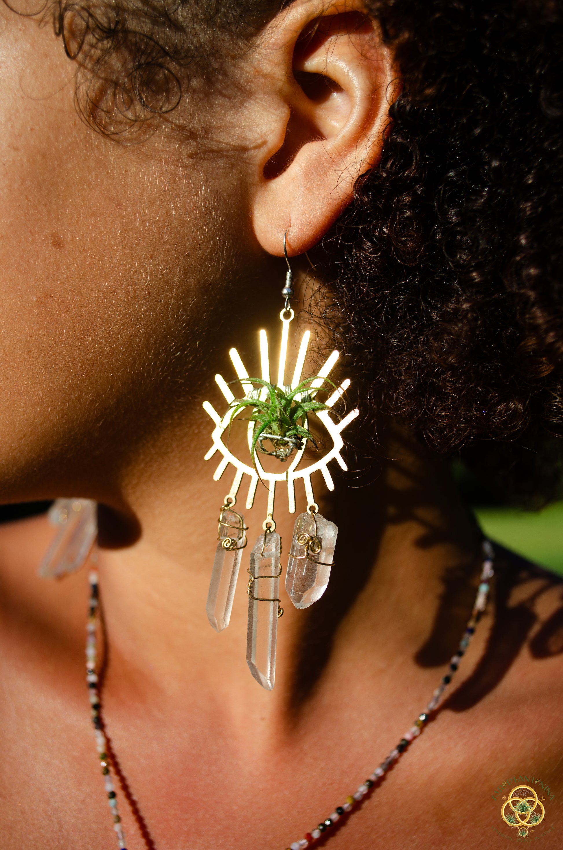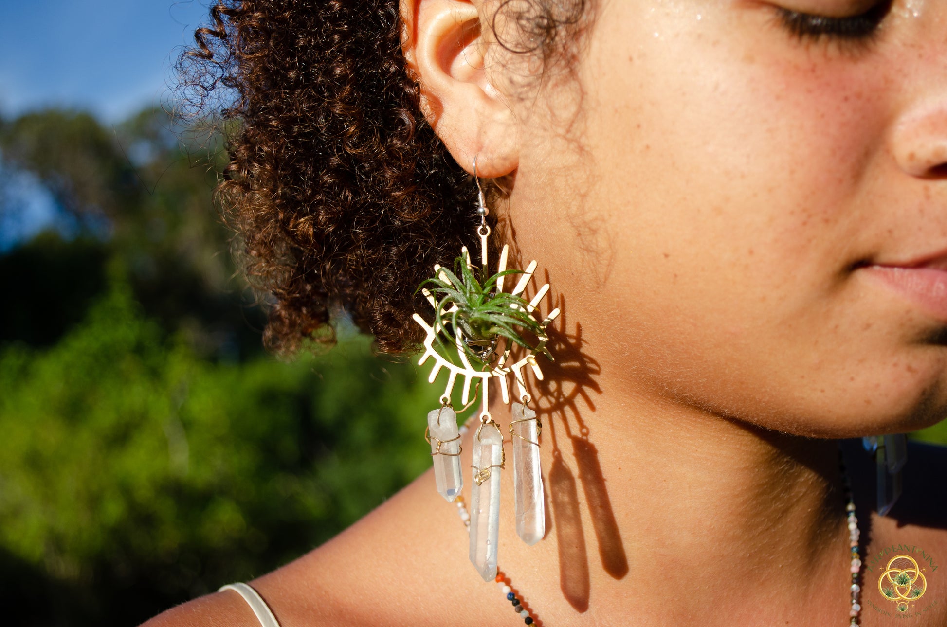 Dazzle in Eye-Ris Air Plant Crystal Tear Drop Earrings ๐๐ฟ A small air plant is cradled in its sterling silver orb, inside of the eye. 3 Genuine crystal quarts points are the tears drops of the eyes. The Geometry in our Iris is Similar to that of an Air Plant. A reflection of our interconnection to all of nature.