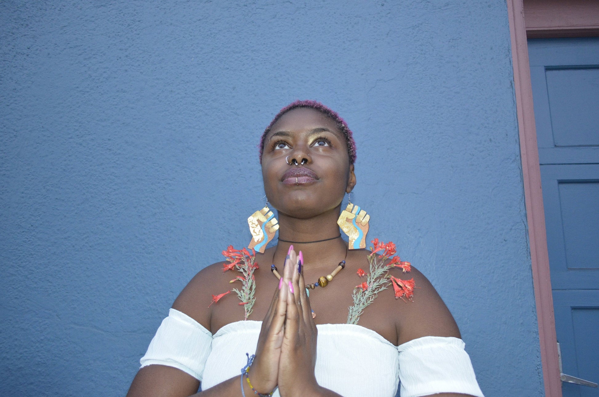 ๐๐๐ ๐๐๐๐๐๐๐๐ ๐๐๐๐๐๐~ (๐ ๐๐๐๐๐๐ ๐๐๐๐๐!) A Series of Gold Plated, Hand Painted, Laser Cut, Wooden Fist Earrings ~ Representing Solidarity with Life on Mama Earth, and imbued with a prayer to restore balance for a thriving, regenerative future that allows the essence of all life and nature to bloom. The Earth Tribe is Rising.๐
