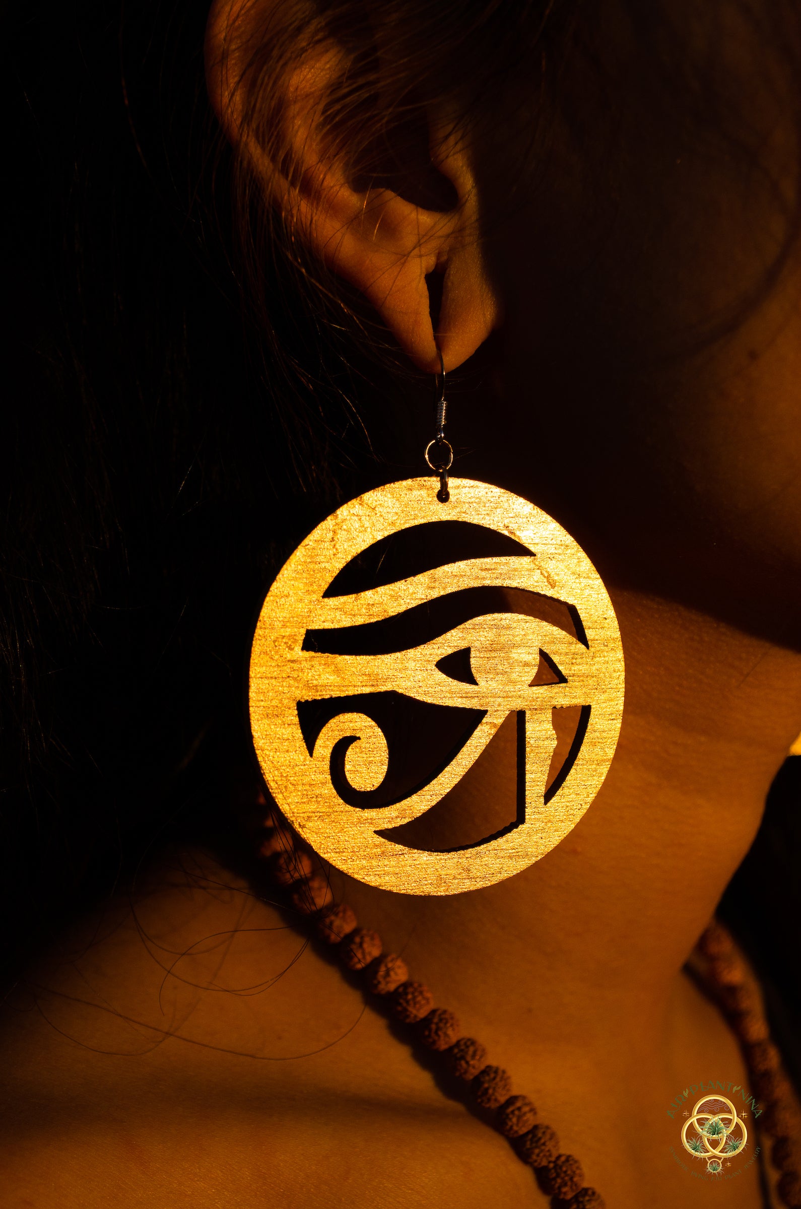 Eye of Horus ~ Ankanji Key Code Light Language Wooden Earrings