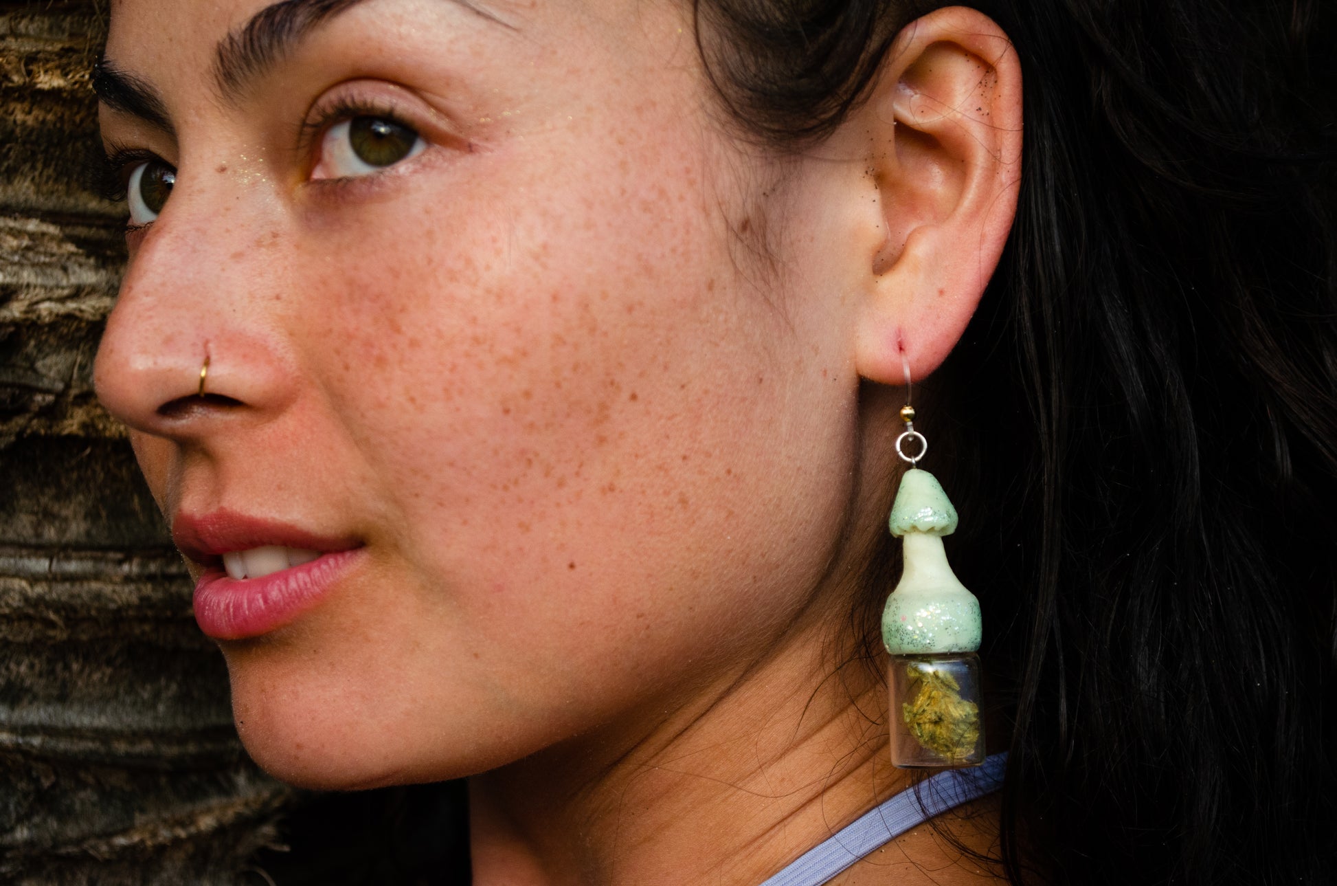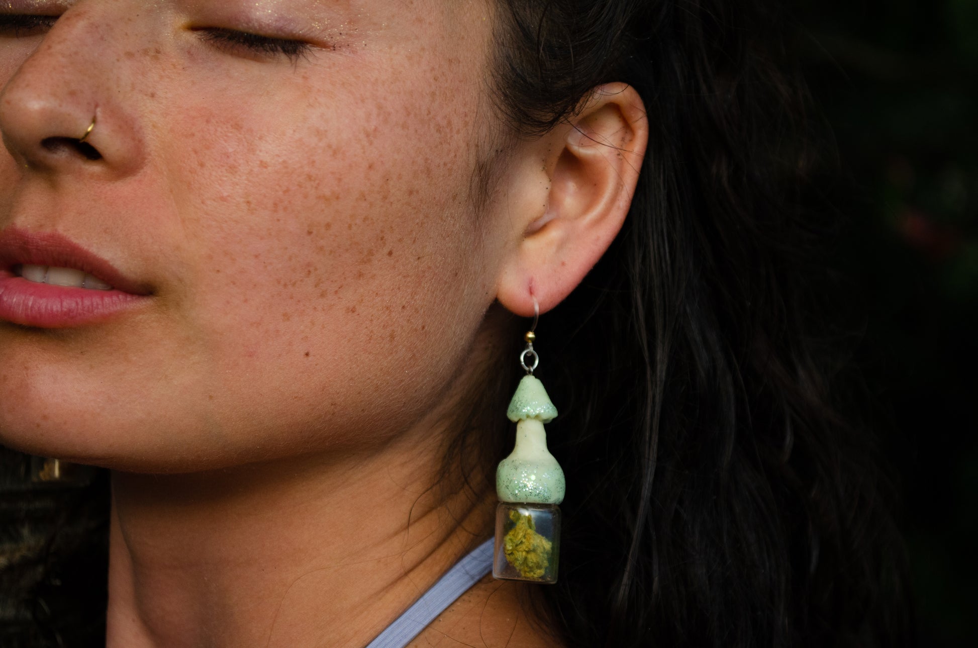 If you're in California, Why Can't you Wear it? These Glow in the Dark Mushroom Shaped Terrarium Jar Earrings are Screw-Top, and can Fit Anything Inside! Reclaim Plant Power.๐ฑStrut that Earthy Eco-Sass ! ๐