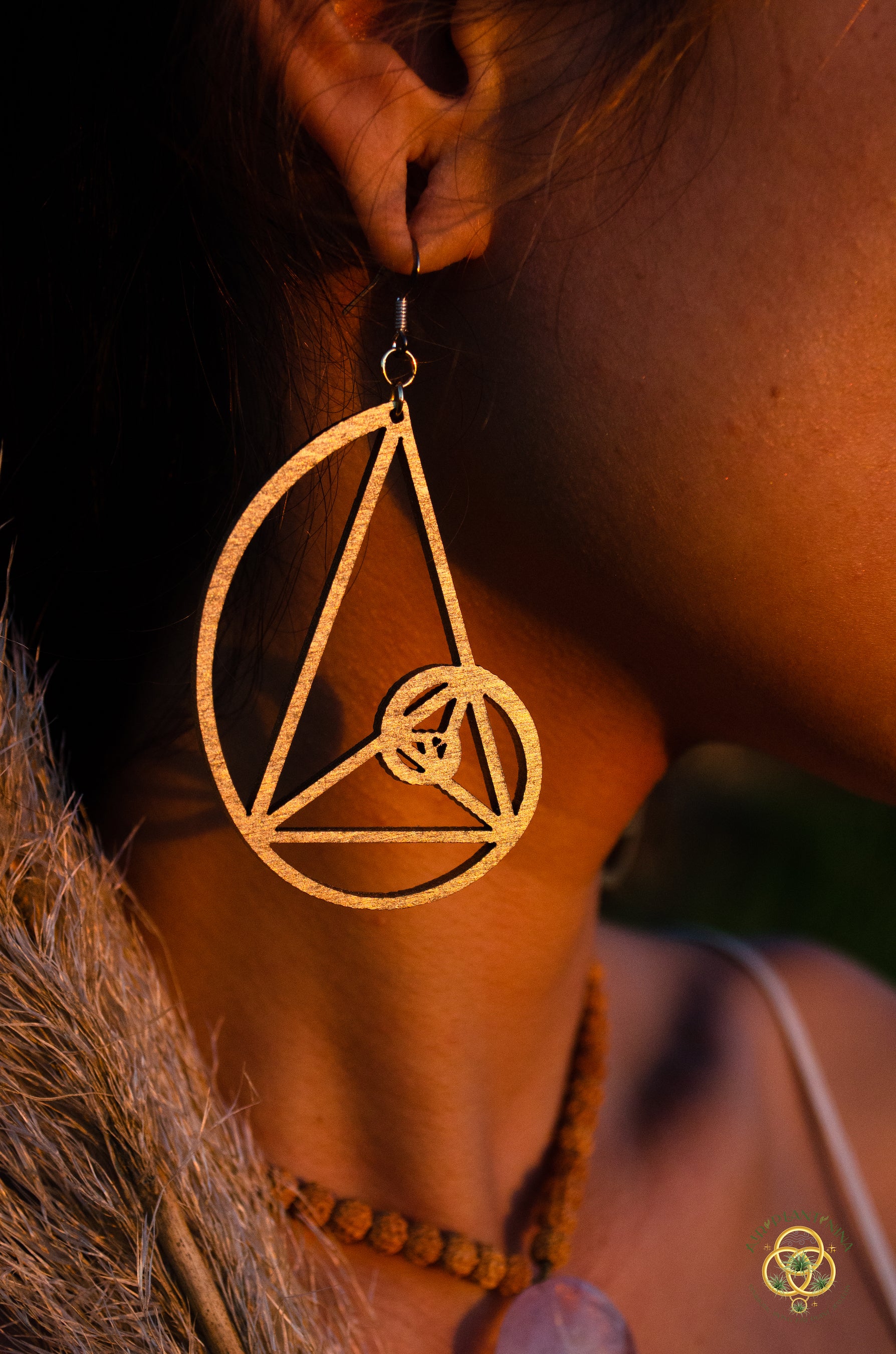 Make a Bold Statement in Glowing Gold Symbols. The Golden Ratio is the Geomrety that exists in nature from galaxies to our DNAs. It is the geometric sequence of the universe, and represents how nature shapes it self with ease and energy-efficient flow. Choose from Large and Small ~Designed and Laser-cut onto Wood by Nina. Earrings are extremely light weight and easy to wear.๐โจ