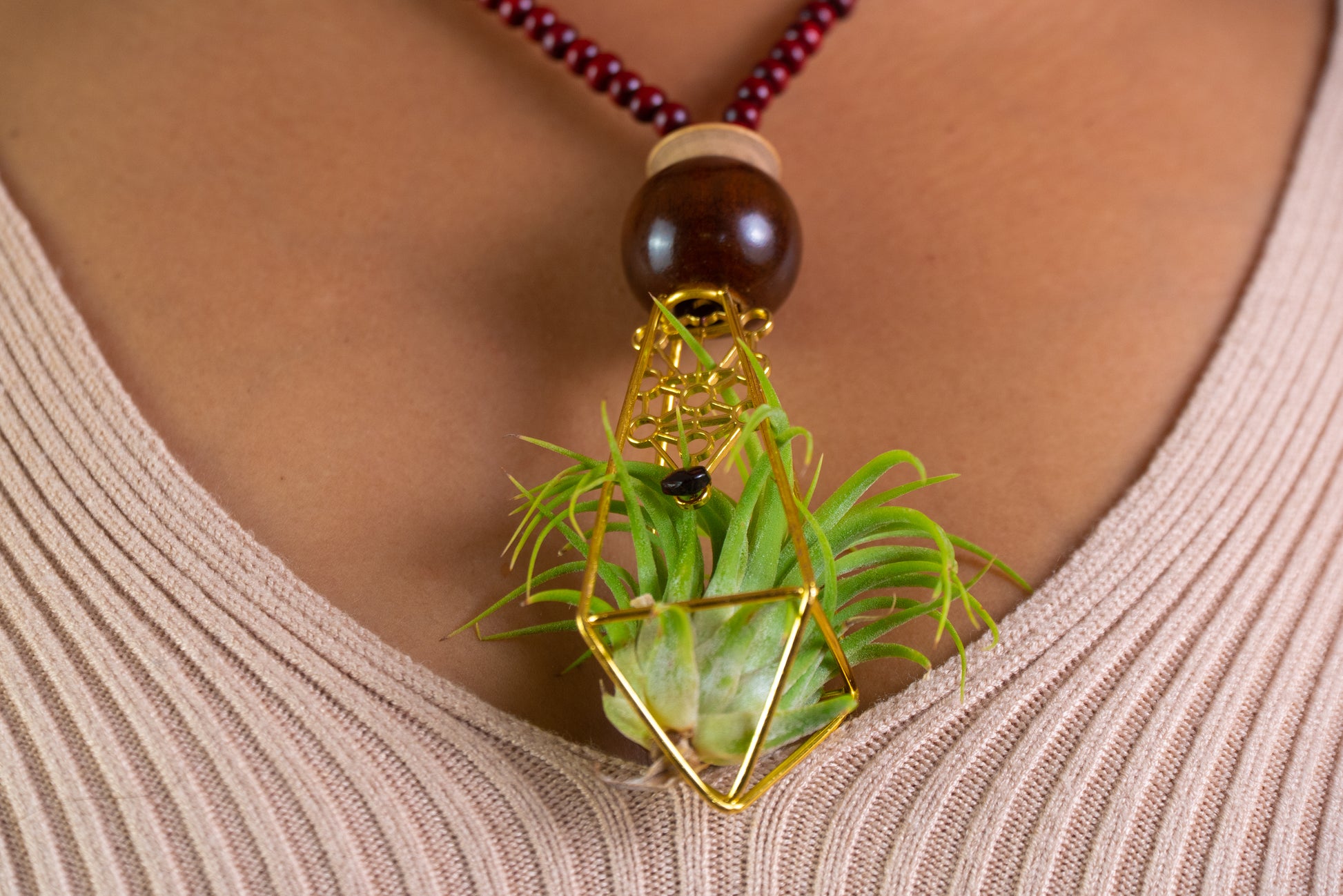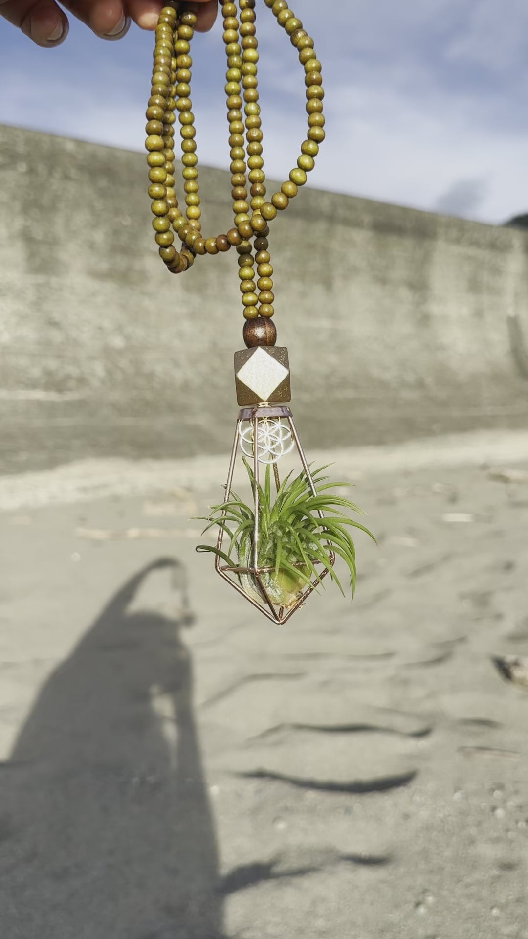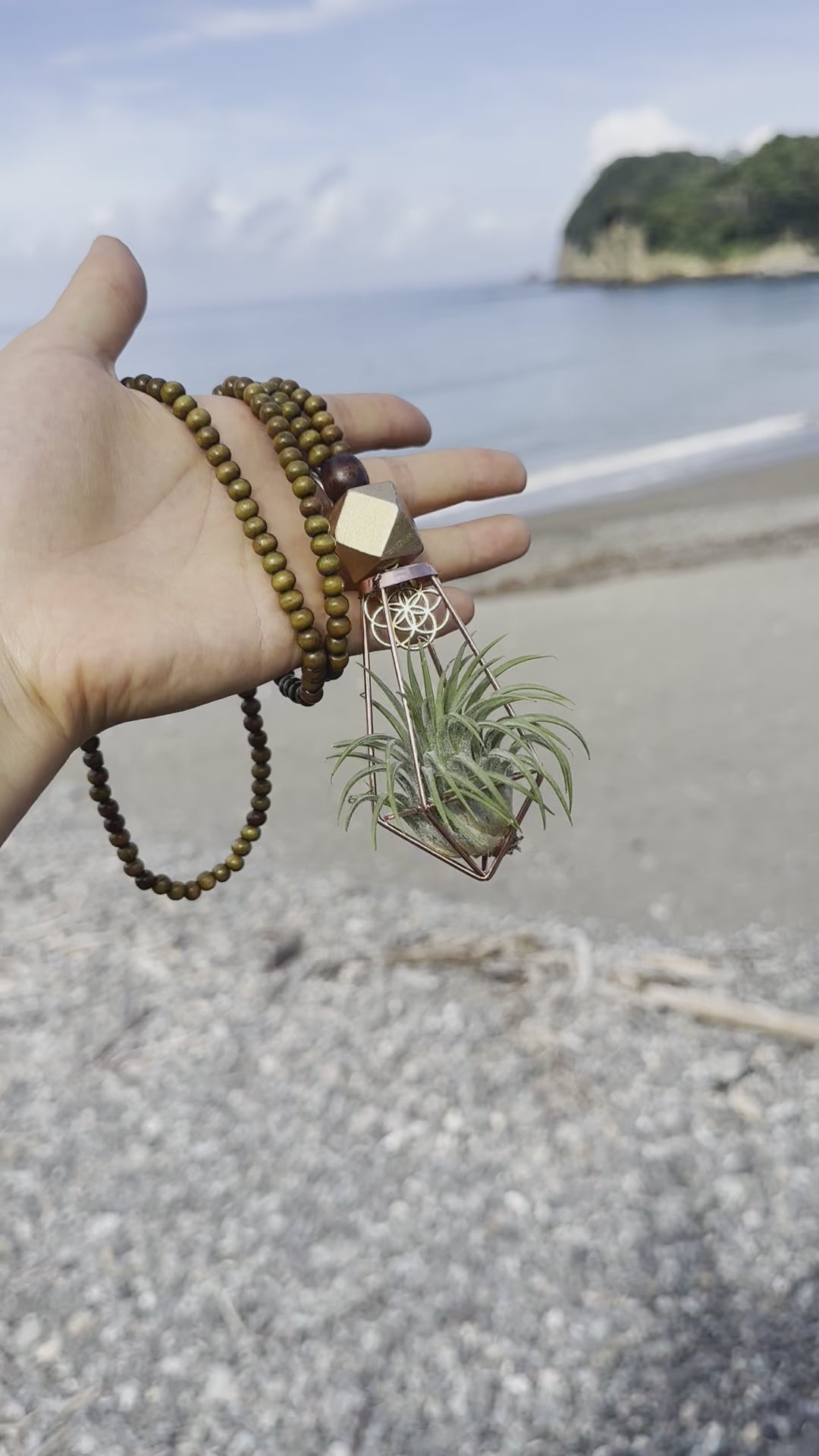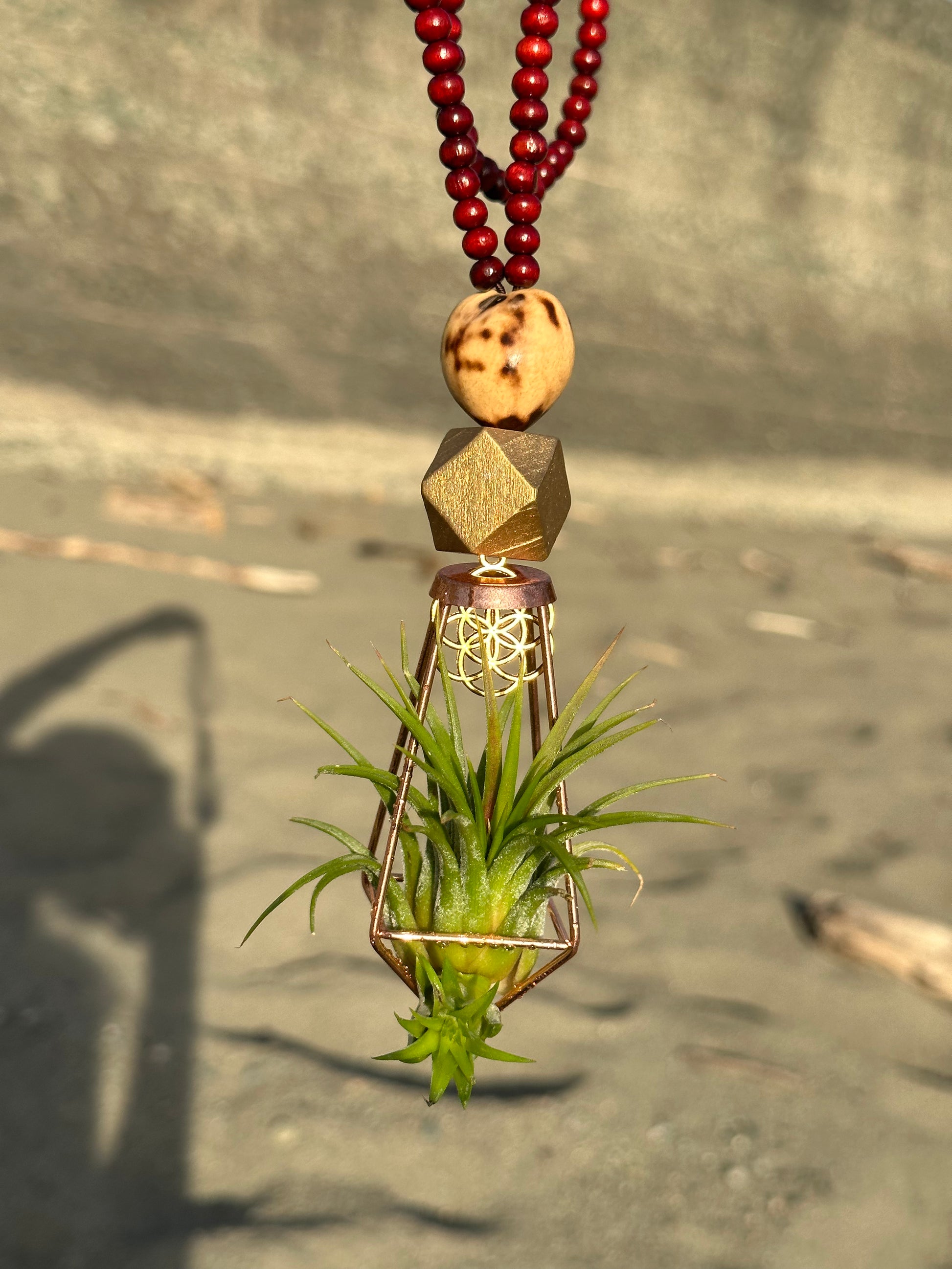 Become an Air Plant Monk! These living, breathing, prayer bead necklaces are made of 108x2 Beads ~108 is a sacred number. Choose from Green Wood Beads or Rudraksha Tree Seed Beads, that bring you protection and magnifies positive energy. The Air Plants are gently cradled in their geometric terrarium pendant, dangling over your solar plexus. Breathe, Grow, and Mediate with your plants!๐ฟ