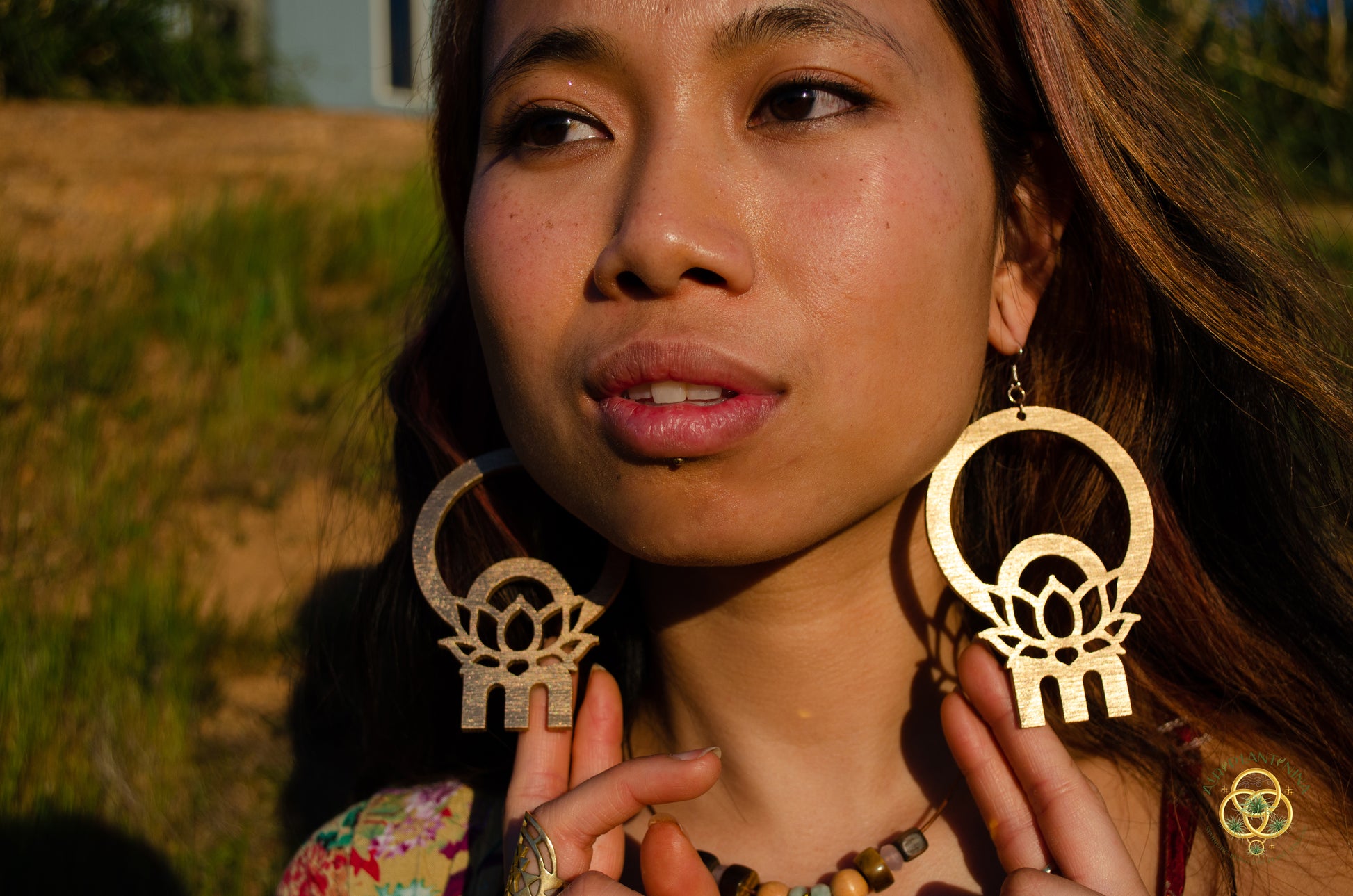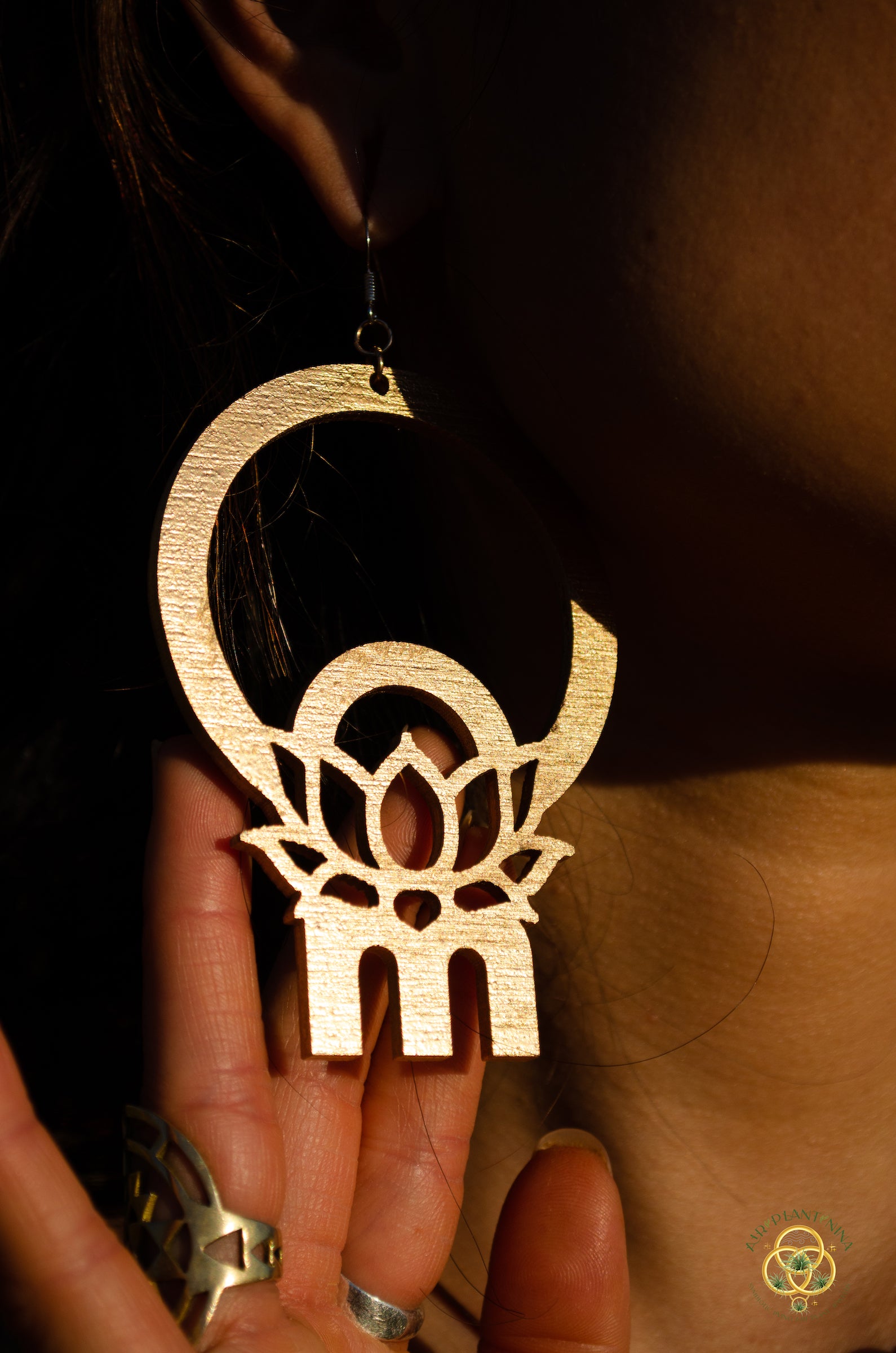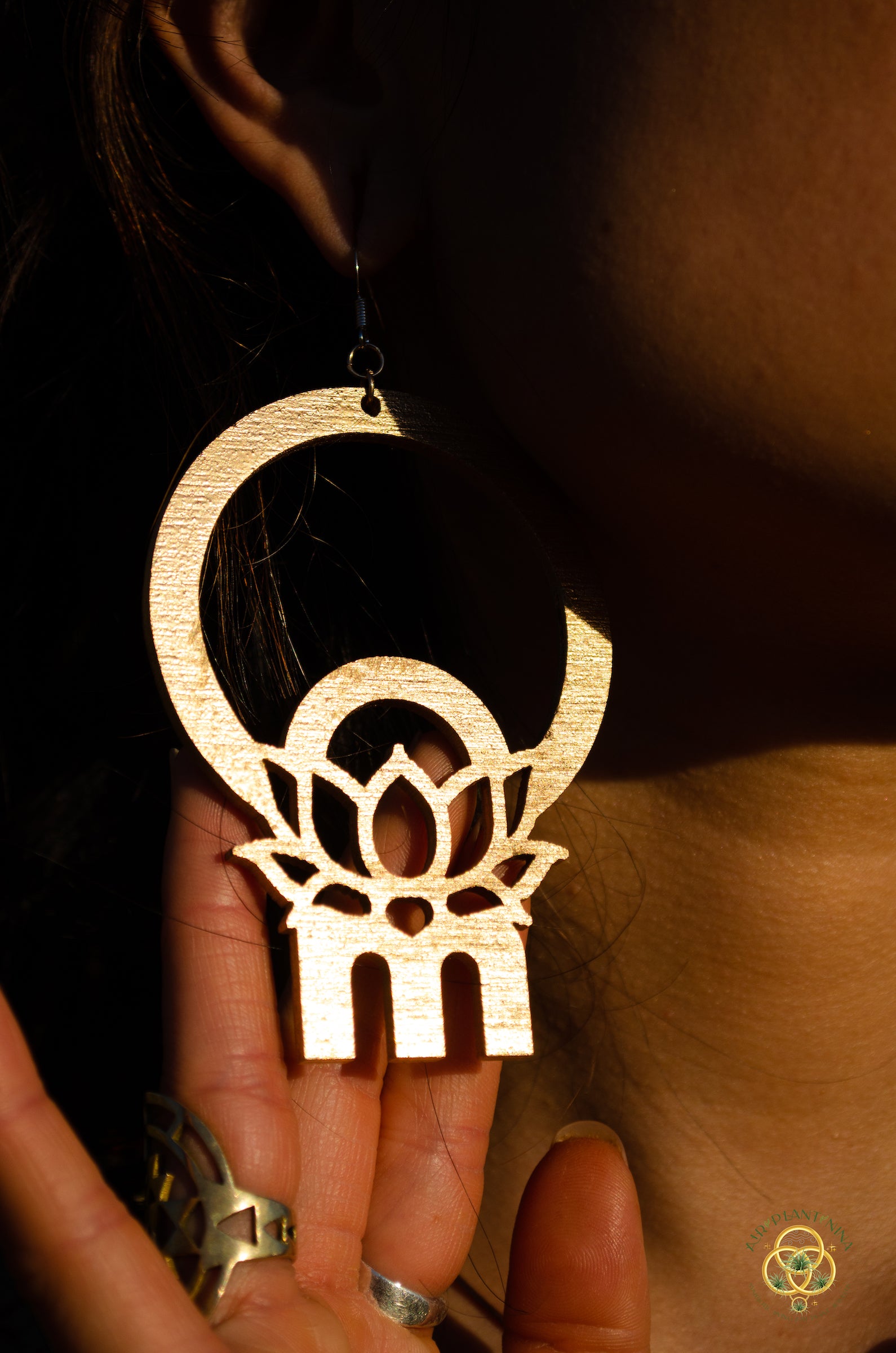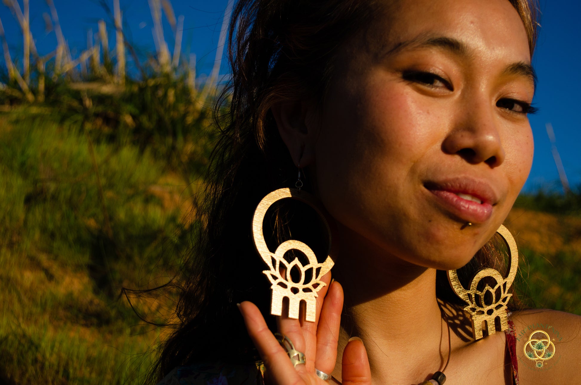 Om Lotus Key Code Light Language Wooden Hoop Earrings