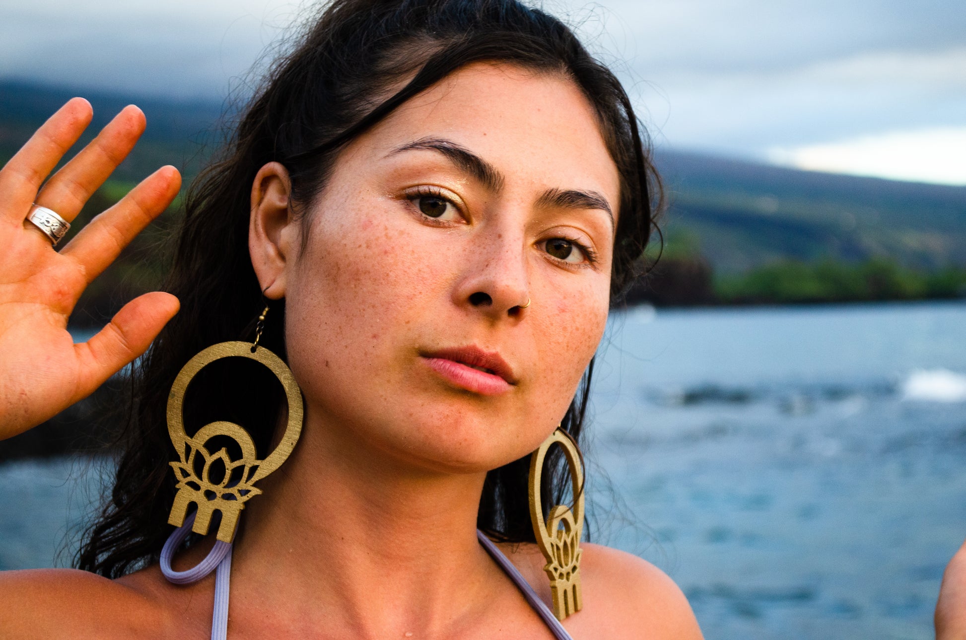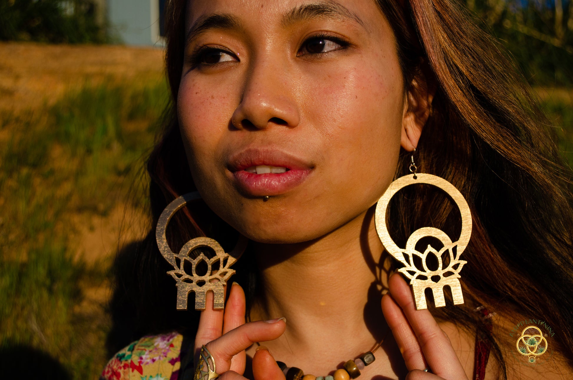 One of a Kind! These Hoop Earrings Reads "O-M," Circle or Cypher represents wholeness. Lineages merged this new language,creating meaning ~Designed and Laser-cut onto Wood by Nina. Earrings are extremely light weight and easy to wear.๐โจย