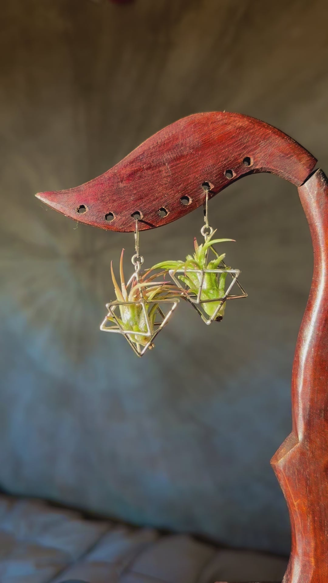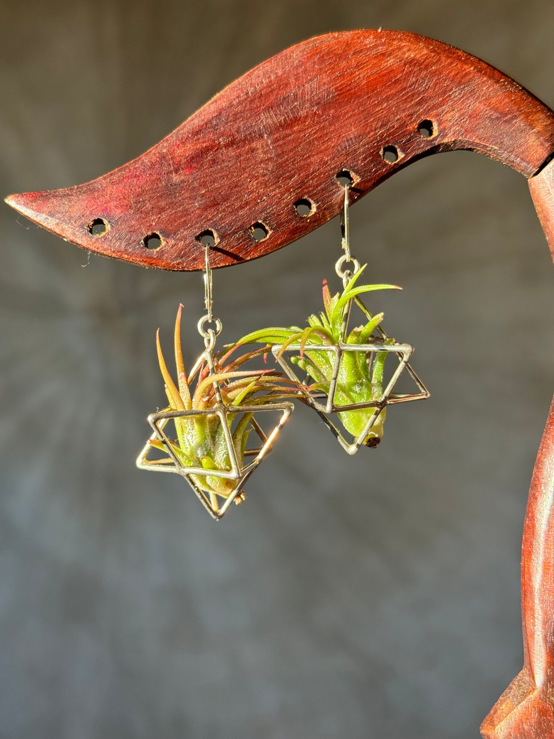 Living Air Plants Charge and Meditate in their 925 Sterling Silver MerKaBa (Rotating Body of Light) Sacred Geometry Temple Earrings ~ The 3D shape gently cradles and secures the interchangeable air plant. Style that brings Fresh Air and Great Energy✨